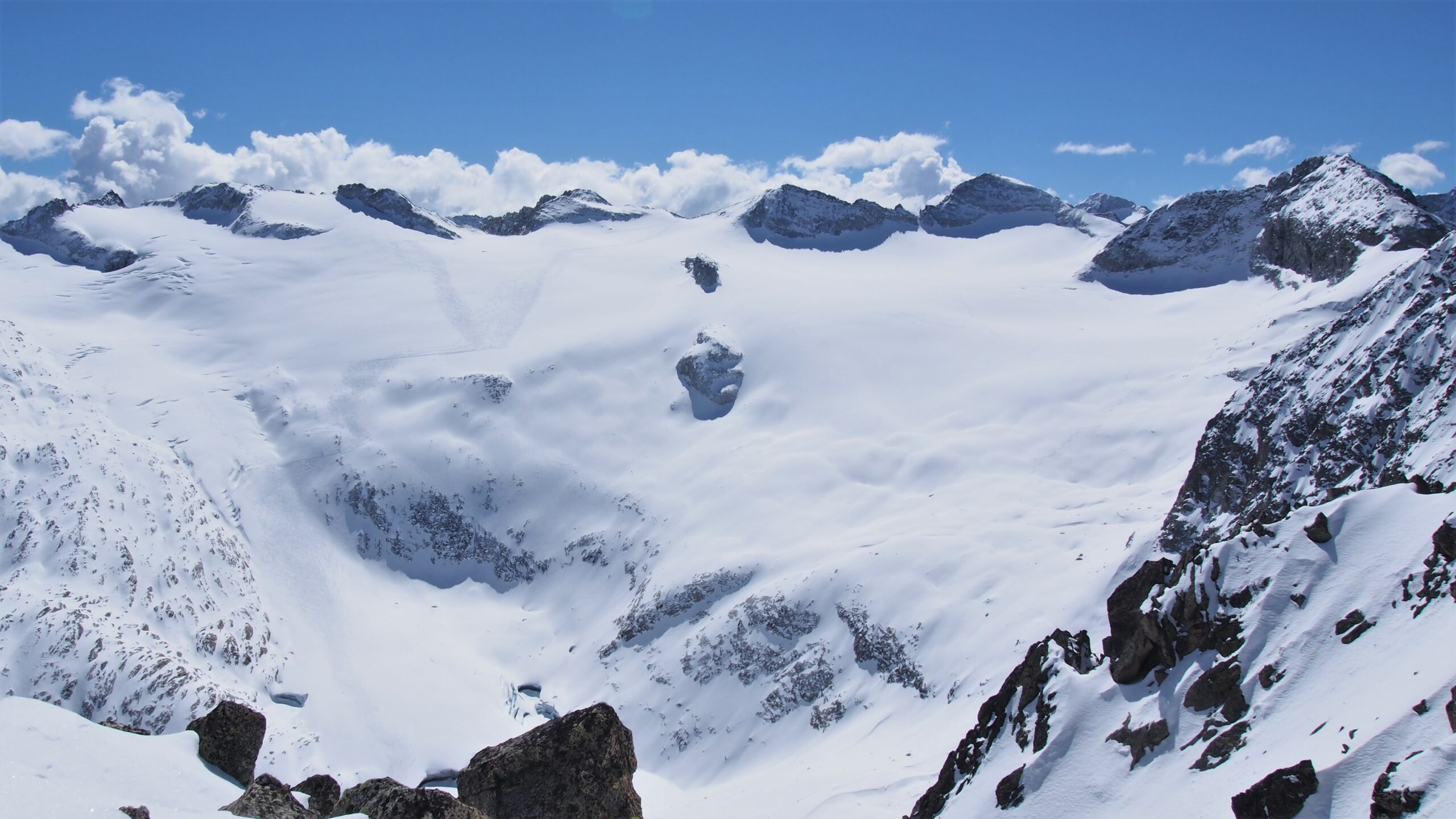 Lobbia Alta e Rifugio ai Caduti dell’Adamello da Presena 3000