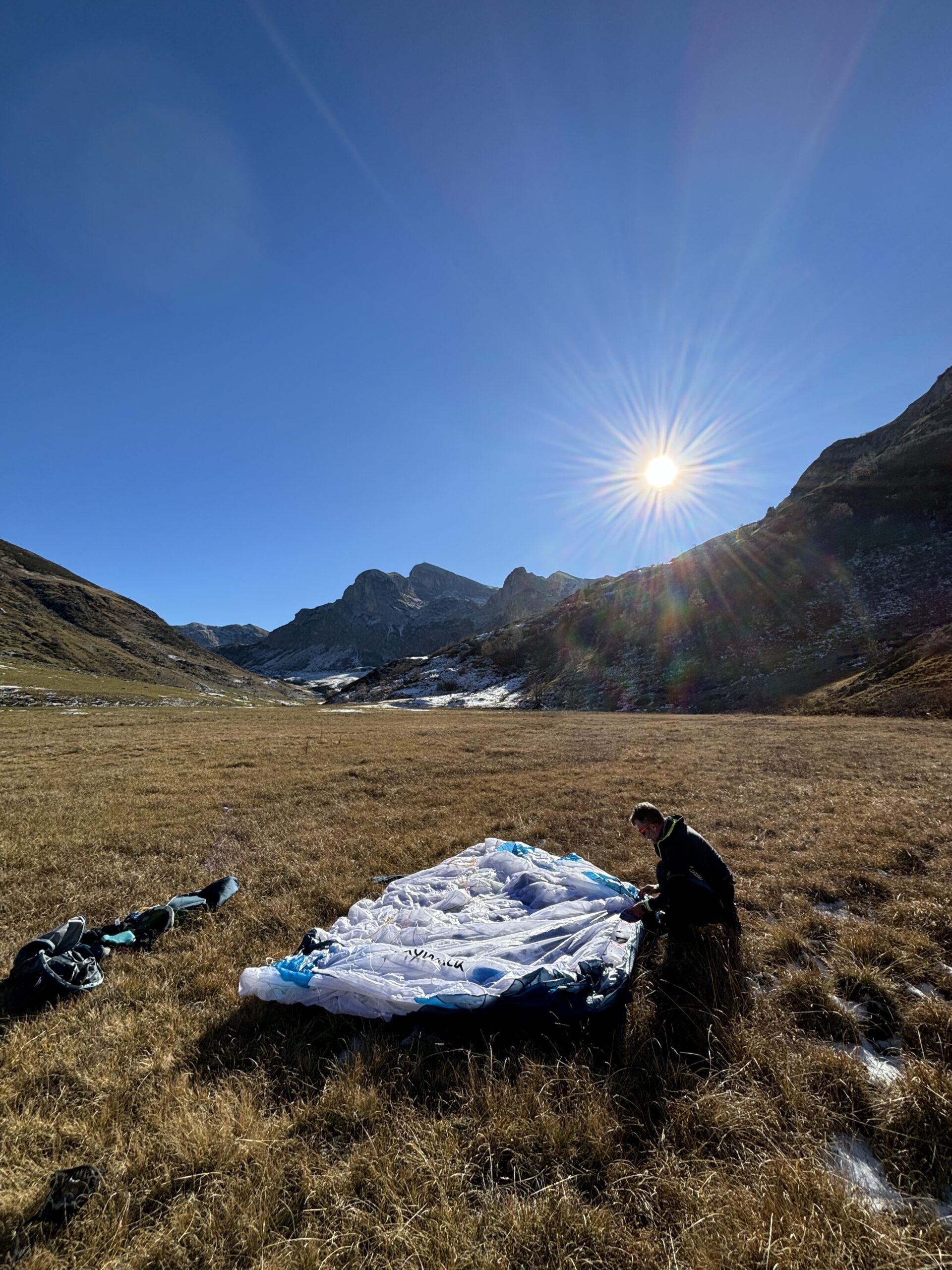 200 metri sotto la cima (verso est) possibili decolli Sud-Est (non provati).