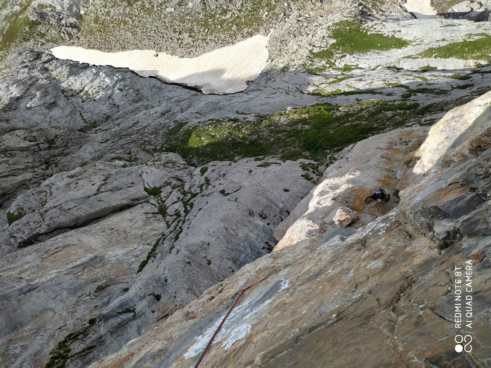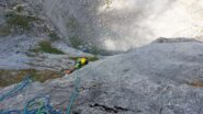 Alla sosta 8 facevo passare il tempo pulendo il terrazzino e lasciando cadere qualche pietra nel vuoto.. da zero a sette secondi era il tempo impiegato prima che esplodessero sulle placche basali, sibilando nel vuoto, risucchiate dalla forza di gravità a una velocità impressionante.