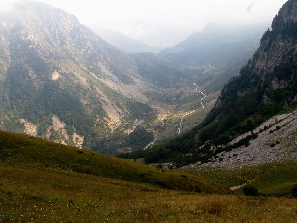 Finalmente si giunge all’ospitale ma esoso nei prezzi Rifugio Don Barbera 2070 m presso lago dei Signori, sotto la vetta del Marguareis.Possibile pernottare spezzando il giro. E’discesa! Prima parte su velocissima sterrata, poi dal gias San Domenico su tecnico sentiero talvolta molto esposto, siamo nella gola della Chisetta! Comunque si cammina per brevissimi tratti.
