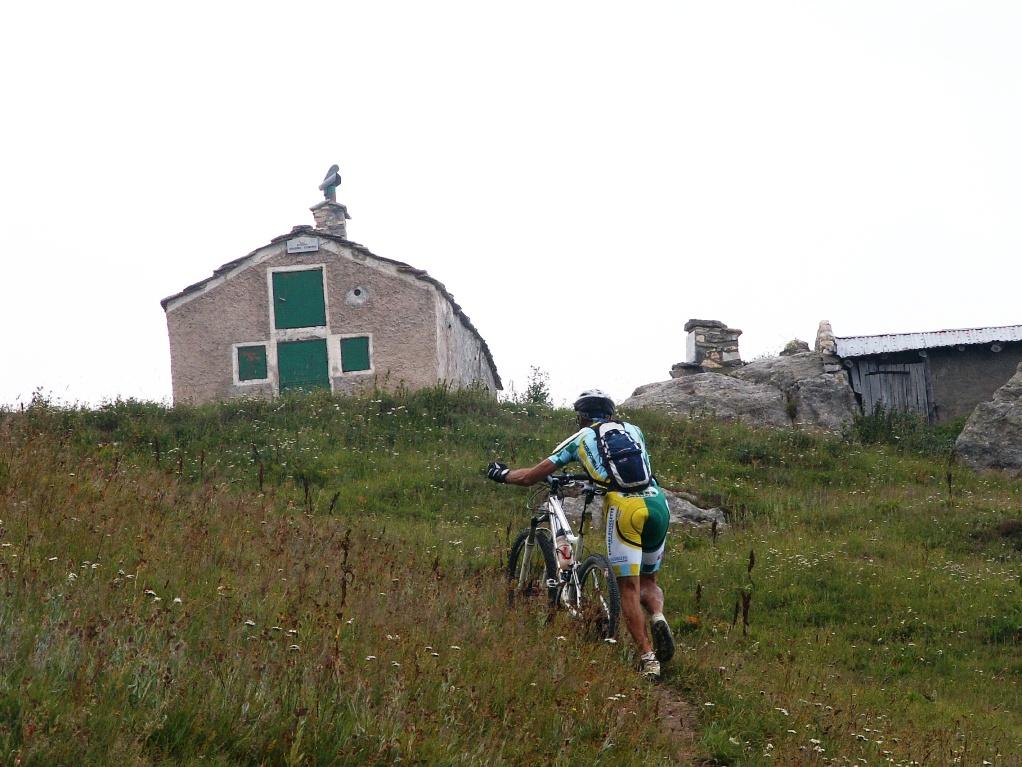 Qui inizia la seconda salita oramai a parte un breve scivolo ghiaioso, a metà, quasi interamente pedalabile. Tra marmotte e speleo si giunge in Francia, cippo proprio in fronte alla Capanna Morgantini, 2237 m , non gestita. Acqua chiusa e comunque con certificato di non potabilità!?!