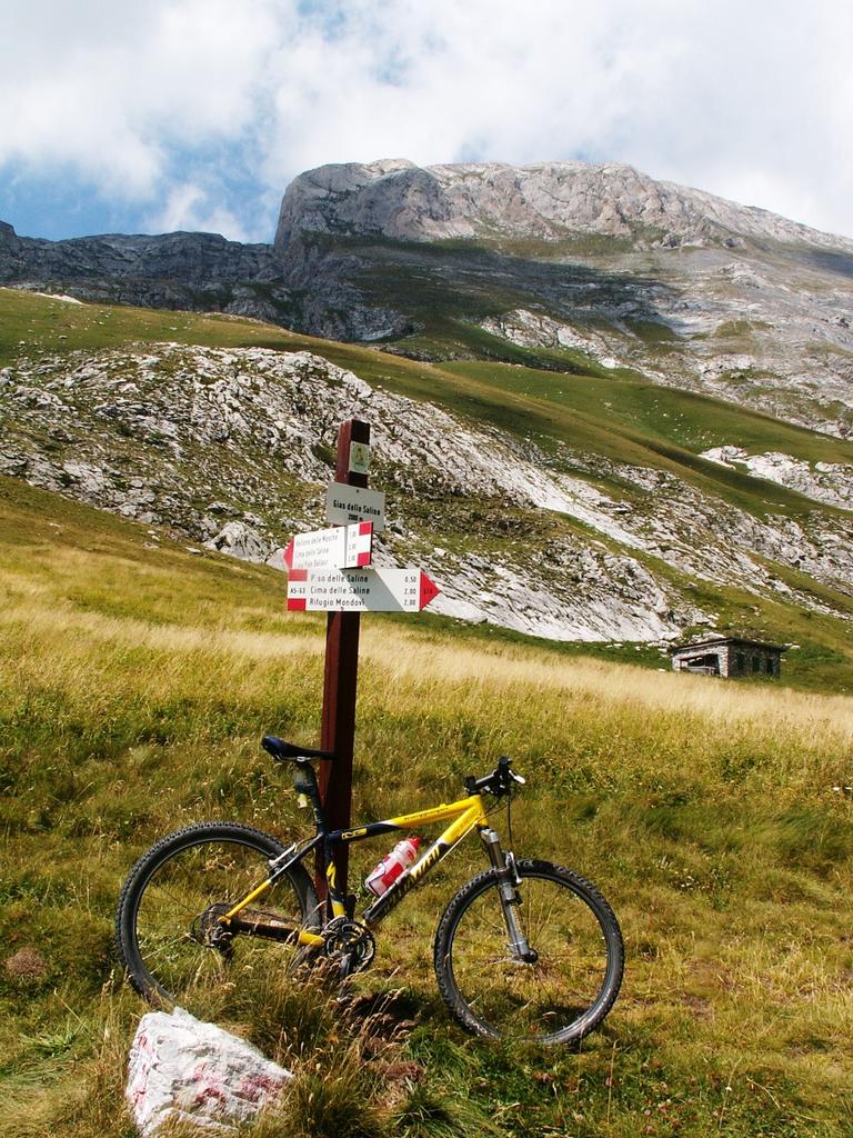 Dal rifugio in pratica è tutto camalling sino al Passo delle Saline 2174 m. Spettacolare balcone panoramico trampolino per una discesa indimenticabile interamente ciclabile. L’atterraggio è morbido sui grassi prati del gias Gruppetti da cui si aggancia la sterrata di fondovalle dell’Ellero che ci conduce con corta deviazione, rampetta, al nuovo rifugio Mondovì, simpaticamente custodito.