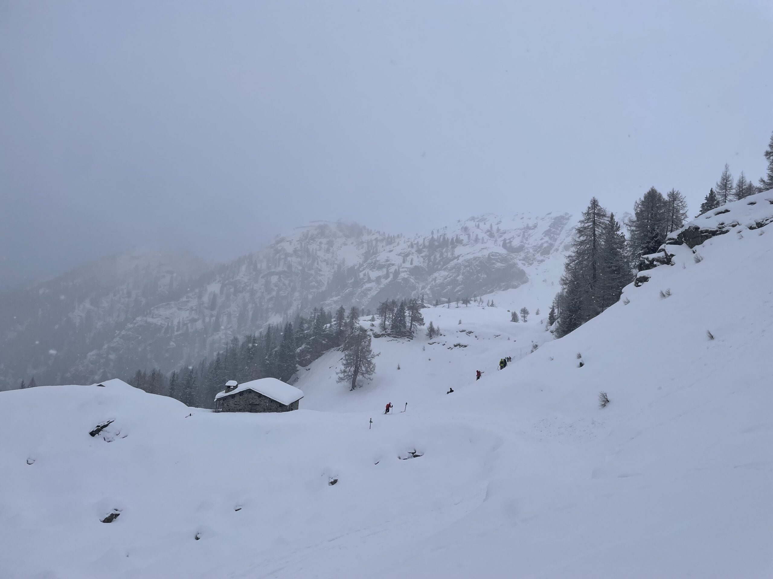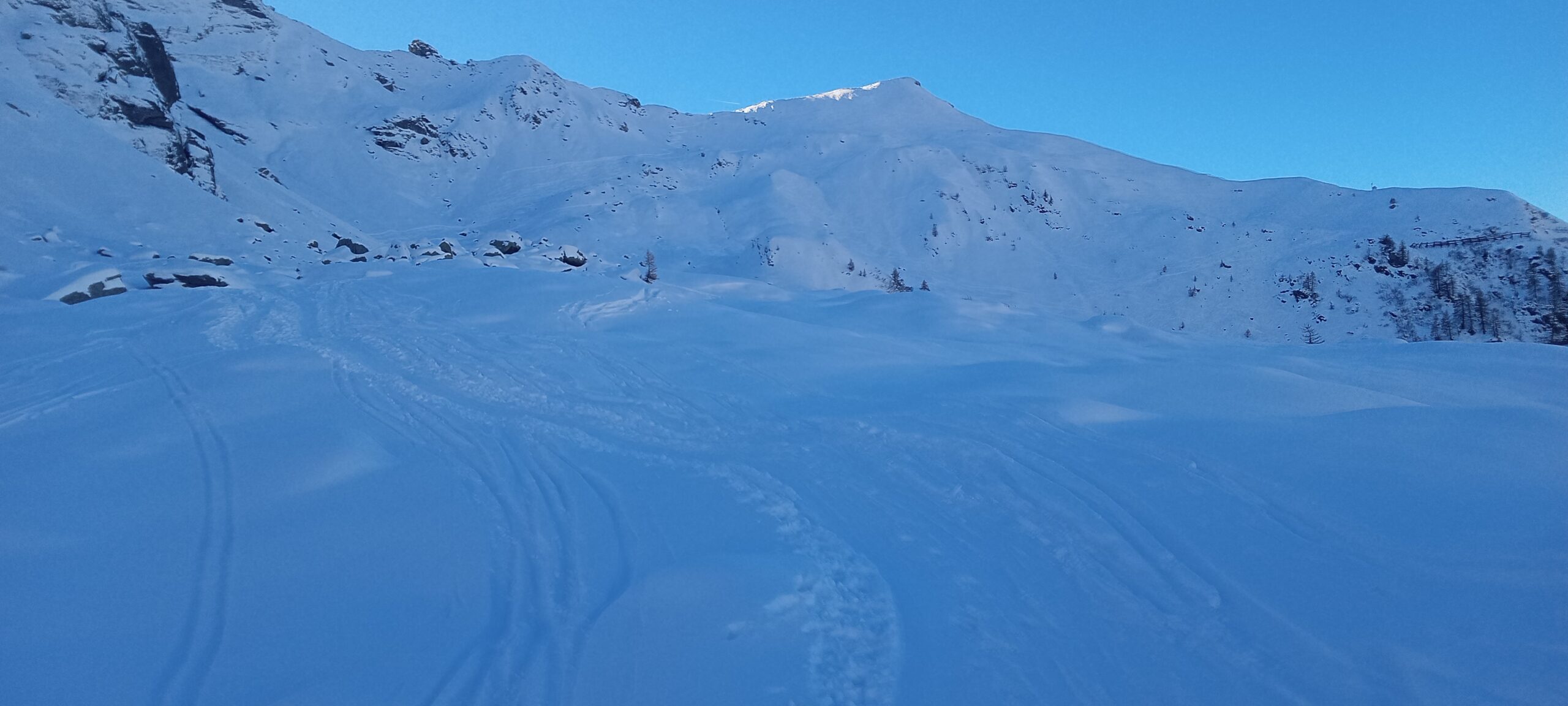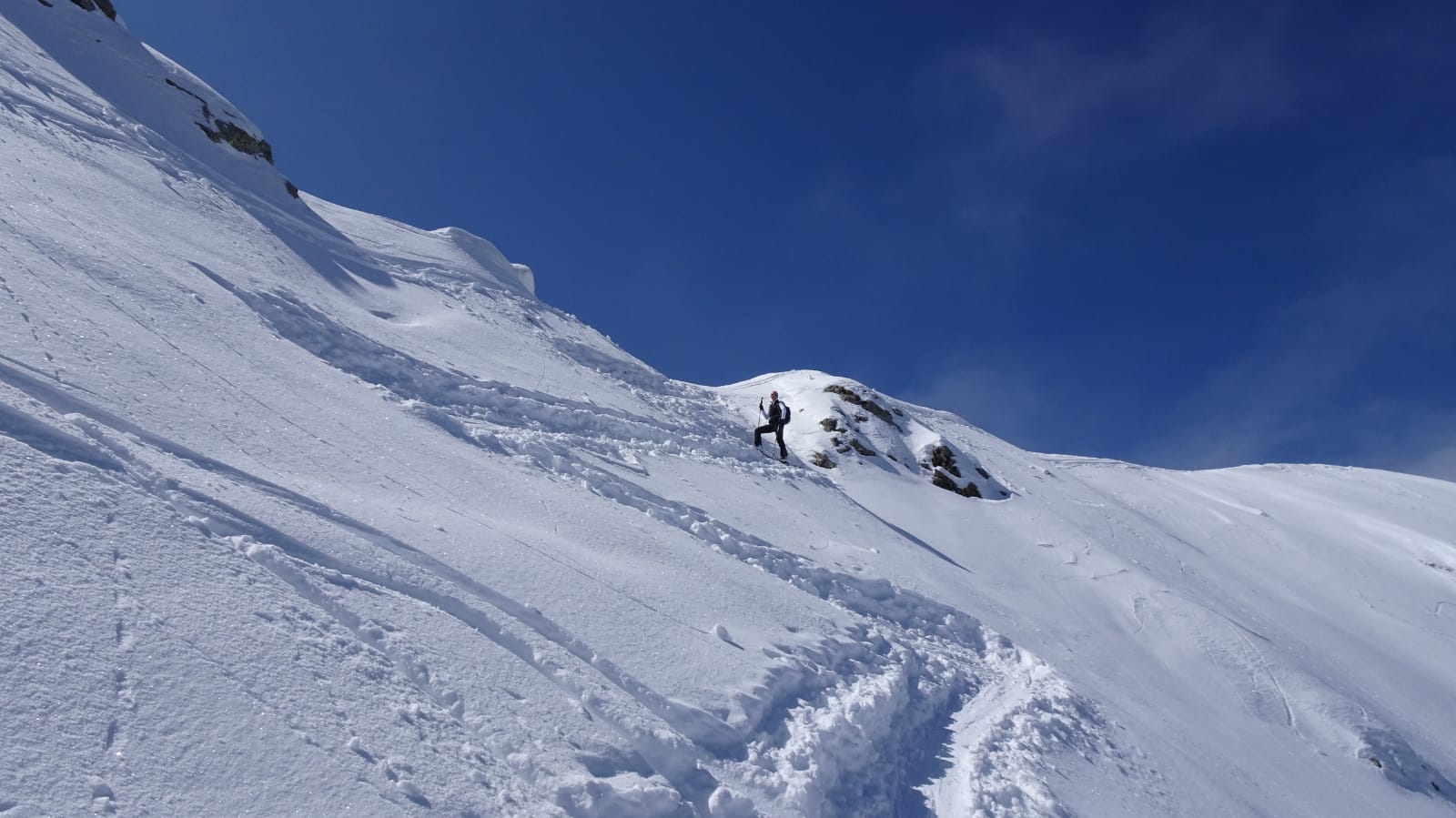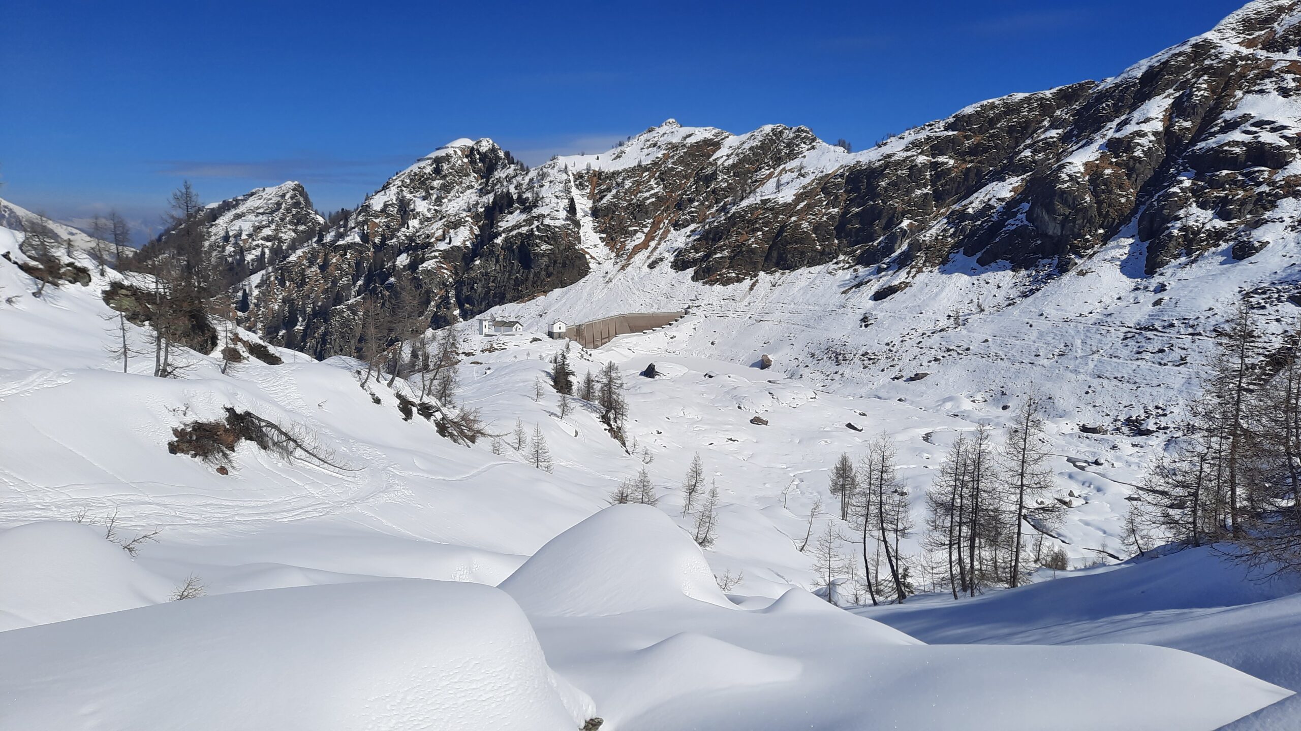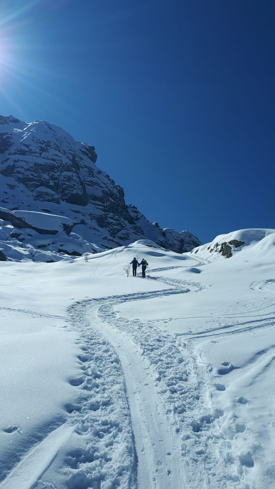 Discesa lungo l’itinerario di salita oppure, con neve sicura, per il versante nord ed un ripido canale che porta sulla via di salita in prossimità delle baite.