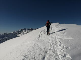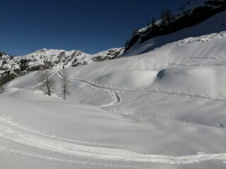 Il solito mercoledì dei pensionati, oggi in val Gerola dove la neve non manca. Partenza da Fenile verso Pescegallo poi al monte Salmurano su ottima traccia anche se ci siamo fatti ingolosire da quella che tagliava tra i paravalanghe un po’ più diretta. Discesa diretta nel vallone sotto la cima con neve ancora fresca nonostante i tanti passaggi. Altri 4 ski alper in cima con noi e qualche ciaspolatore che ha un po’ rovinato la traccia, delicato l’accesso alla cresta. Aiutato una simpatica ragazza nel passaggio. Discesa lenta per un problema alla caviglia del socio Gianni. Visione spaziale dalla cima. Poche persone sulle piste, diversi ski alp verso il passo Salmurano.