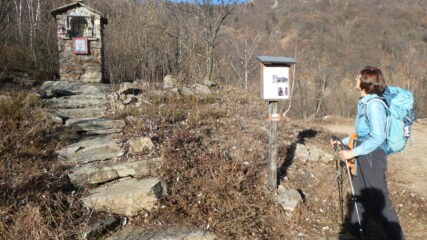 Partiti dal tornante dove inizia la bella sterrata che raggiunge le Baite Proima. Da qui sentiero abbastanza agevole con saliscendi e qualche tratto ghiacciato facilmente evitabile. Molto belli alcuni piloni dedicati ai vari santuari mariani presenti nel mondo. Emozionante la comparsa del santuario di Marsaglia nel bosco, purtroppo chiuso e non visitabile (nessun umano presente). Veloce la salita al rifugio con bei panorami. Tratto stradale dell’anello di ritorno con saliscendi e piuttosto lungo.