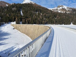 Abbiamo percorso la pista Fracch, la pista Diga e la pista Pian del Doss. Spettacolare il passaggio sulla diga e il panorama dalla baita del Doss. Salita al Doss e successiva discesa abbastanza impegnative.