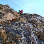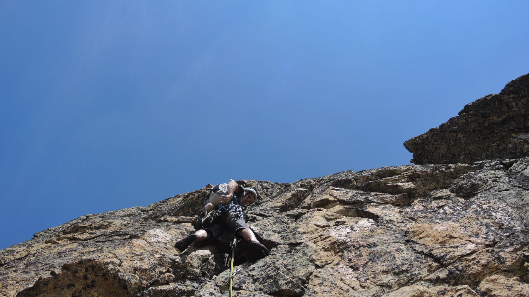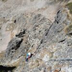 L2 diedro con passaggi delicati (6a+, 30 m); segue breve trasferimento al torrione di fronte;