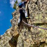 L3 bellissimo muro verticale lavorato (6a, 30 m); segue calata in doppia e trasferimento di 50 m alla torre a sinistra;