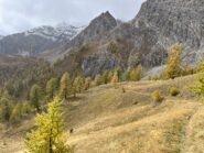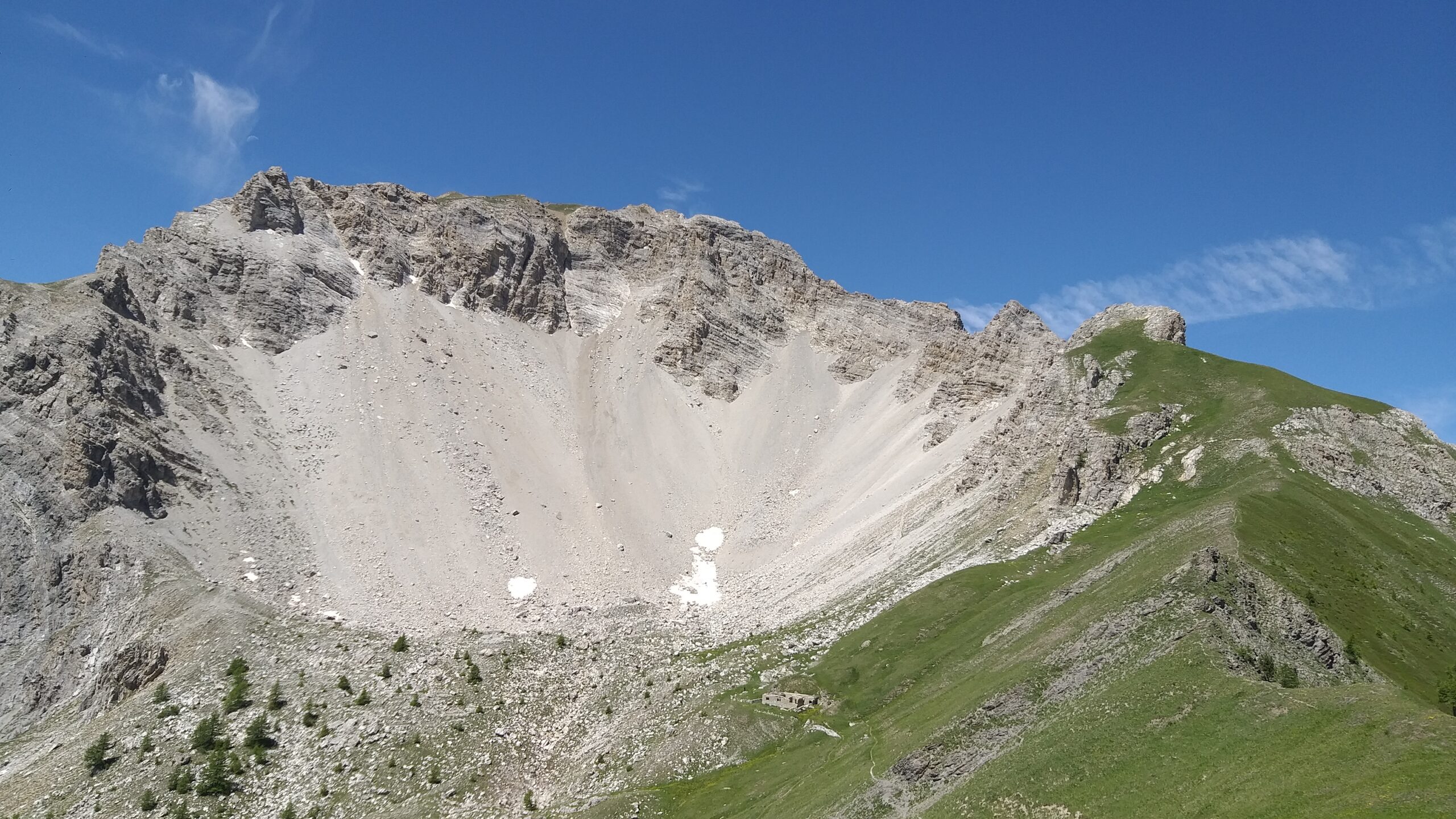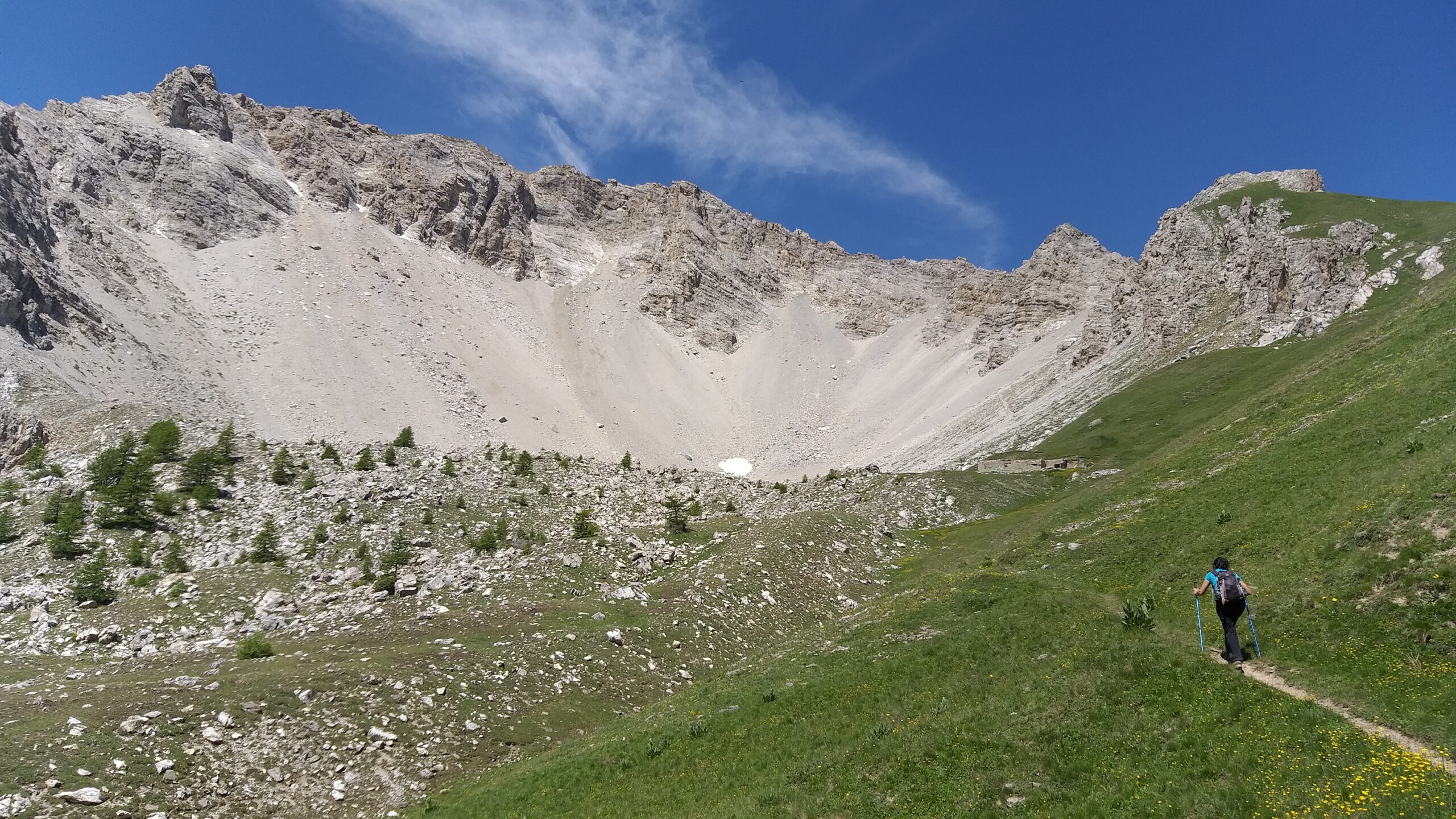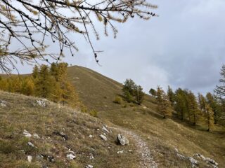 Si giunge ad un pianoro 2205 m dal quale si può arrivare alla vetta con ampi tornati oppure percorrendo liberamente le ampie praterie sottostanti la cima.