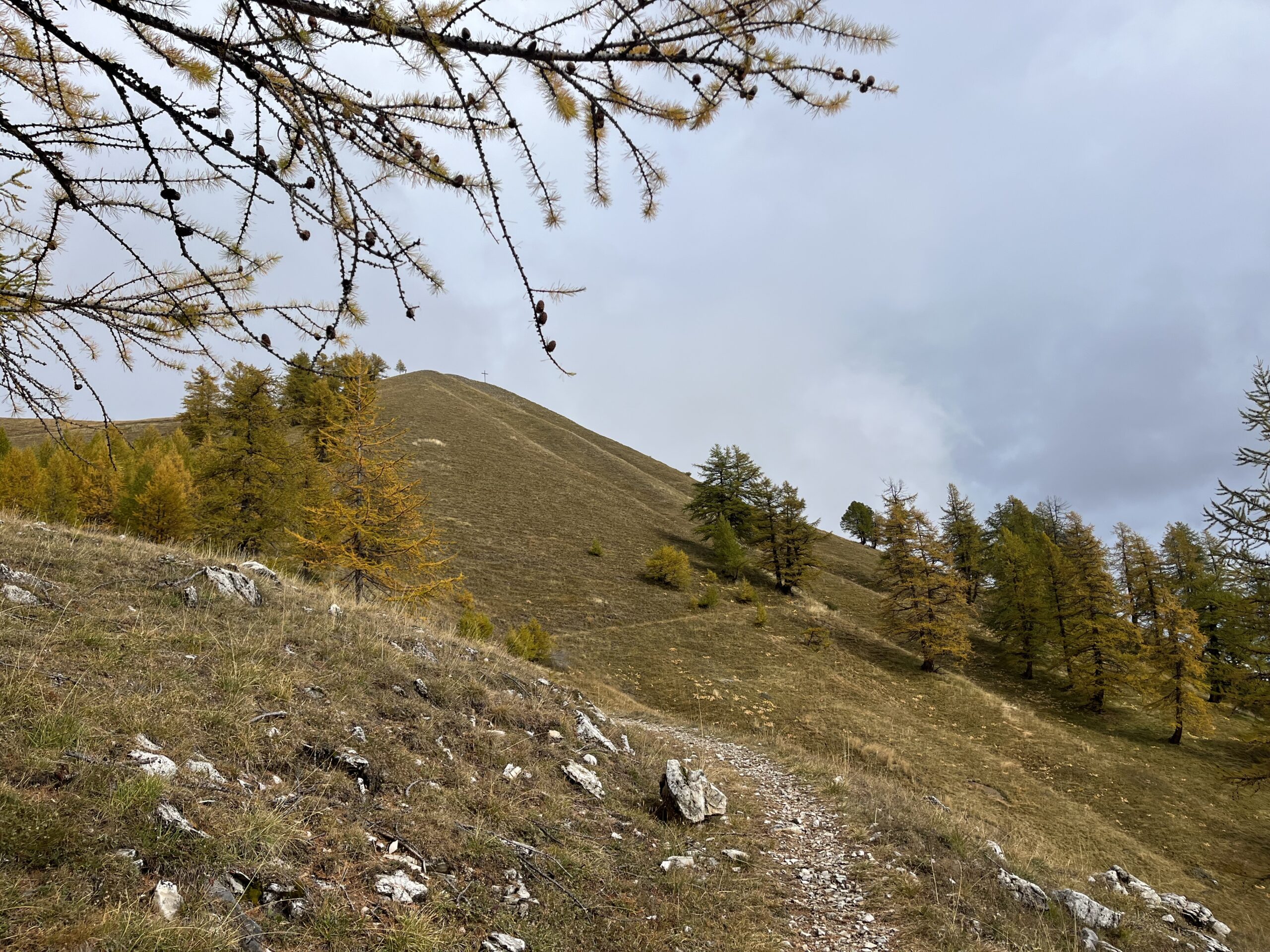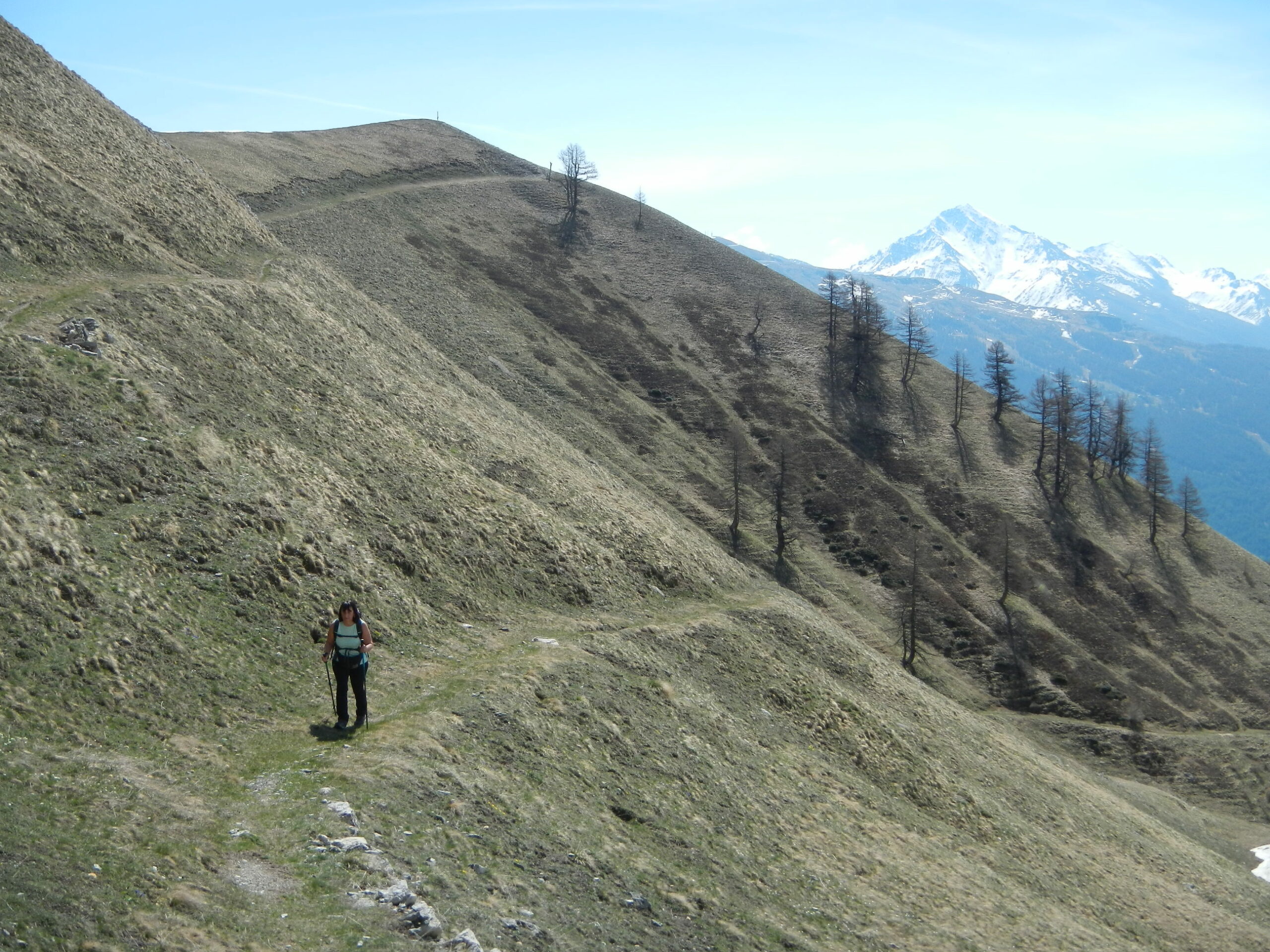 Dal Cotolivier riprendere la strada in direzione del Colletto Pourachet oppure arrivarvici seguendo un sentierino sulla cresta della montagna, ben evidente.