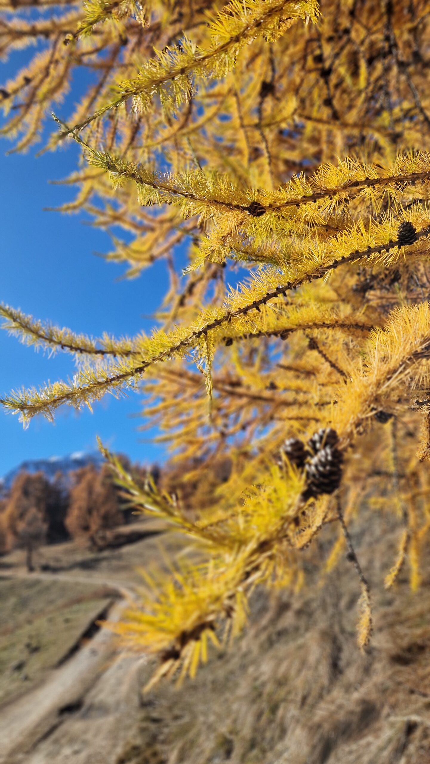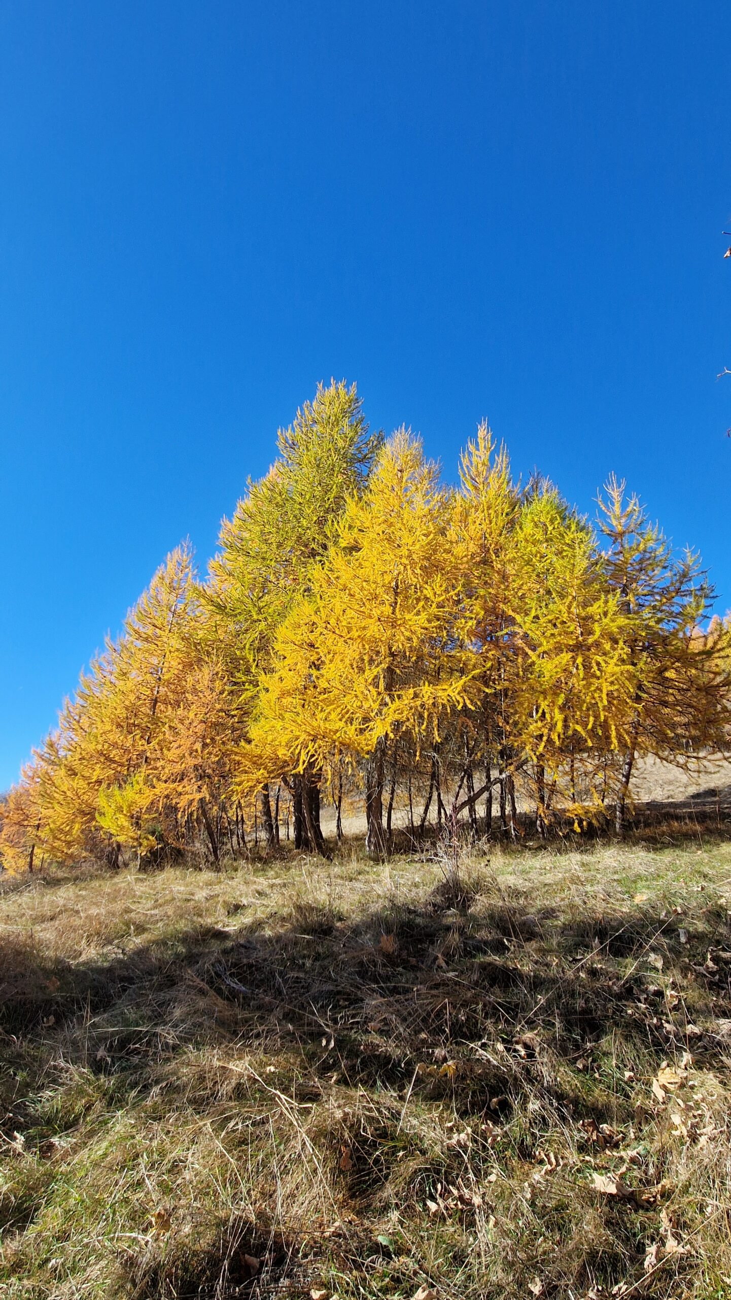 Bellissima gita per ammirare il foliage di questo caldo autunno, tra il blu del cielo e il giallo e arancione dei larici abbiamo percorso questo facile sentiero.