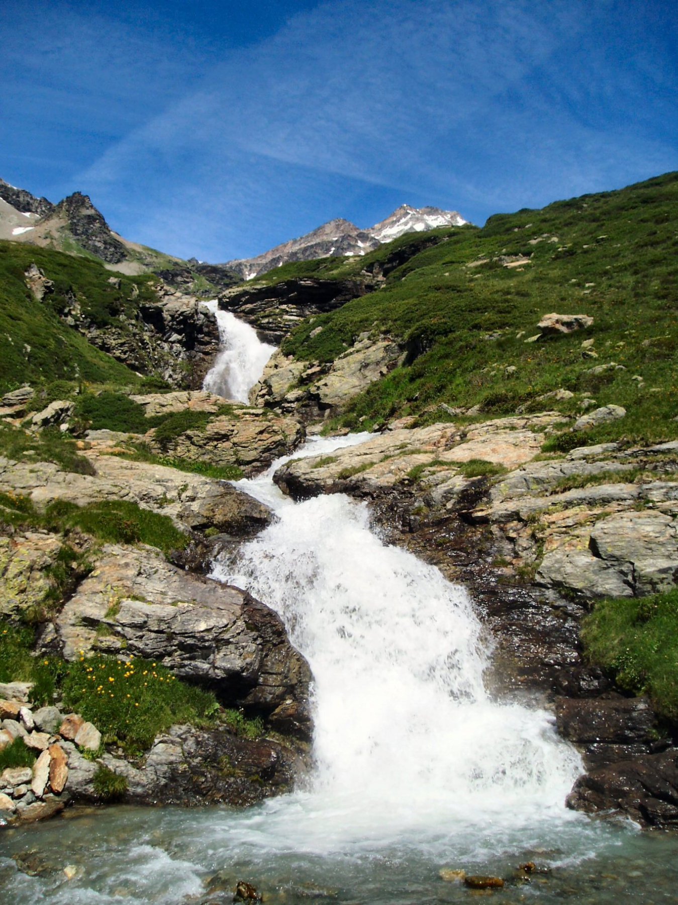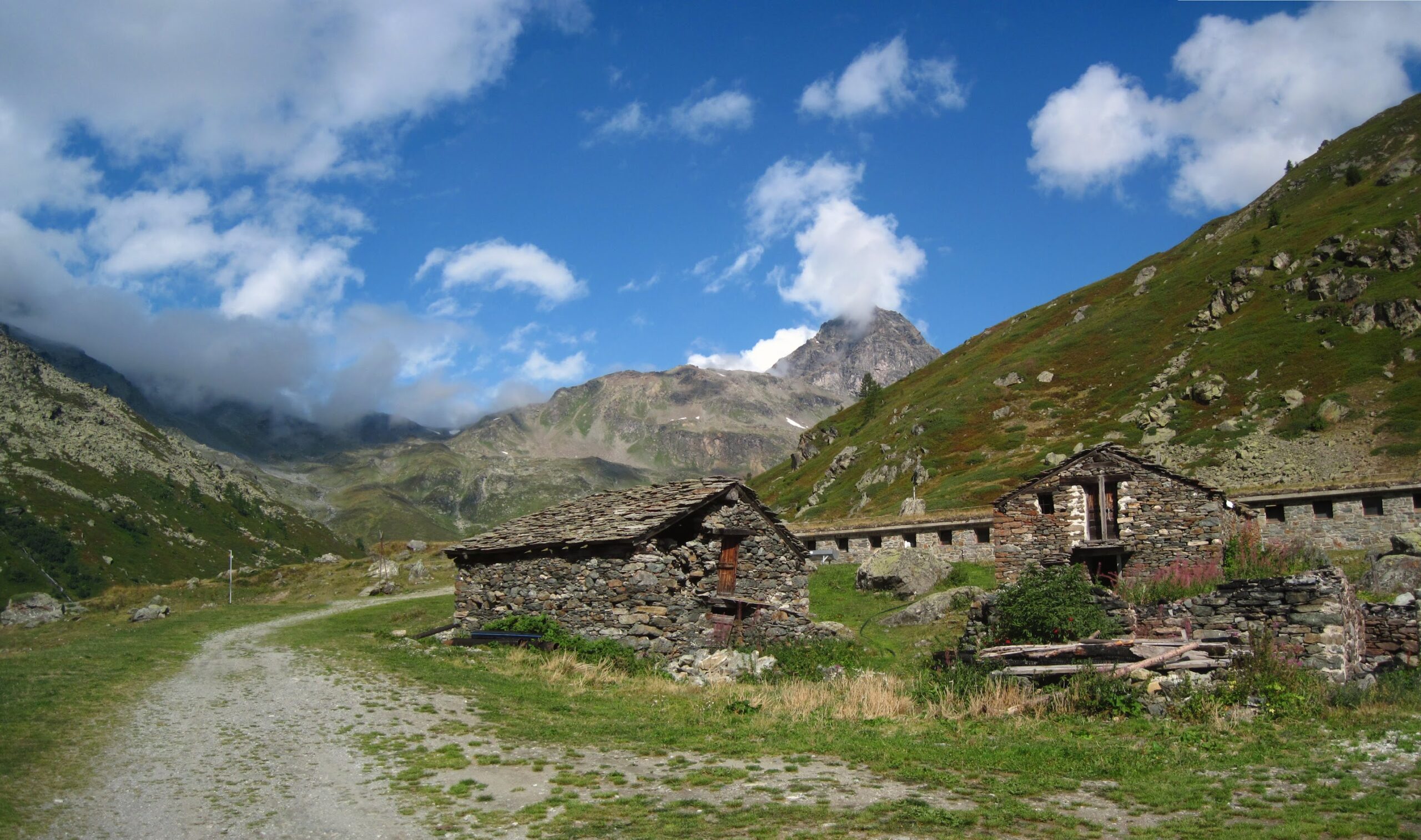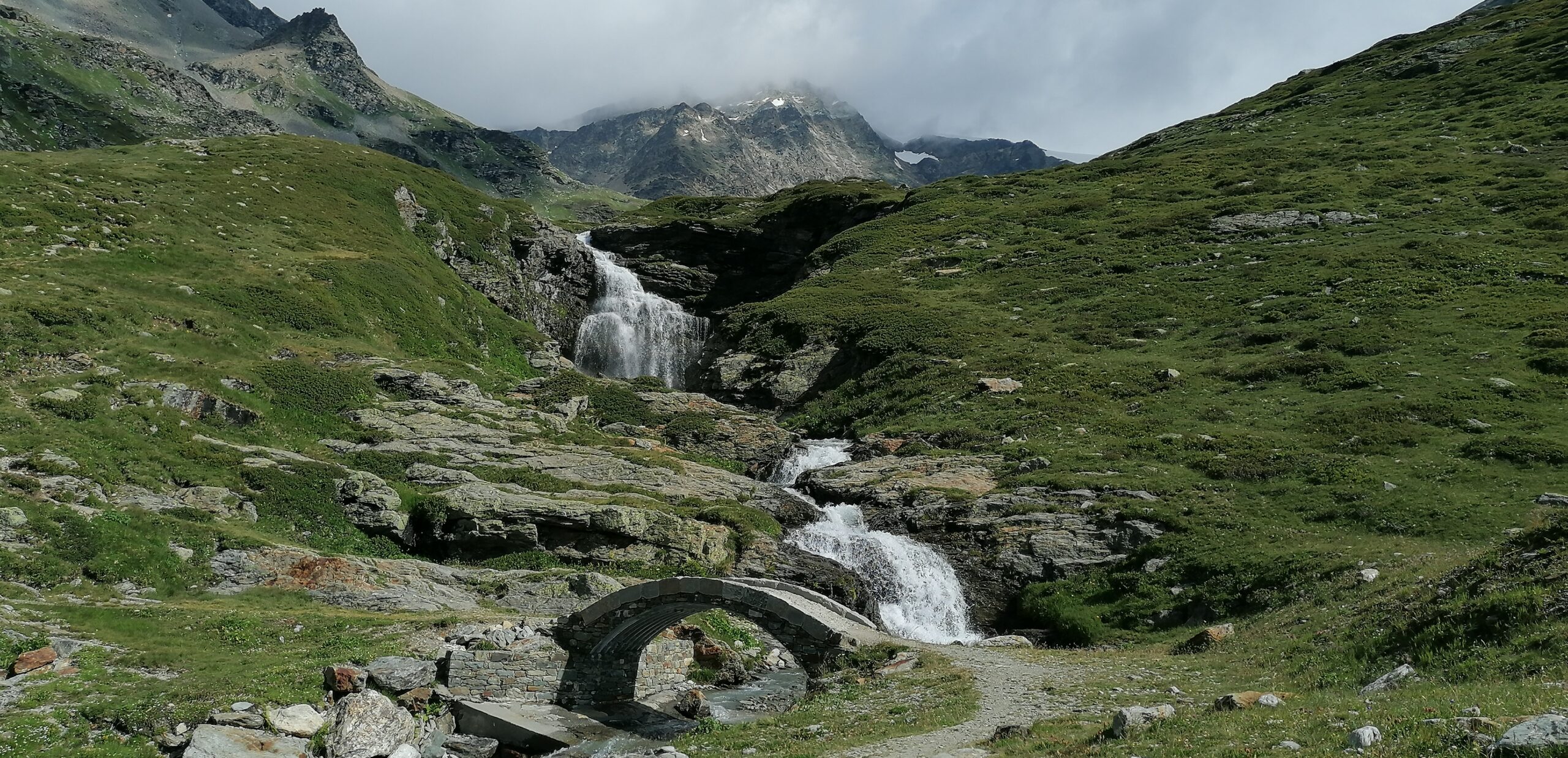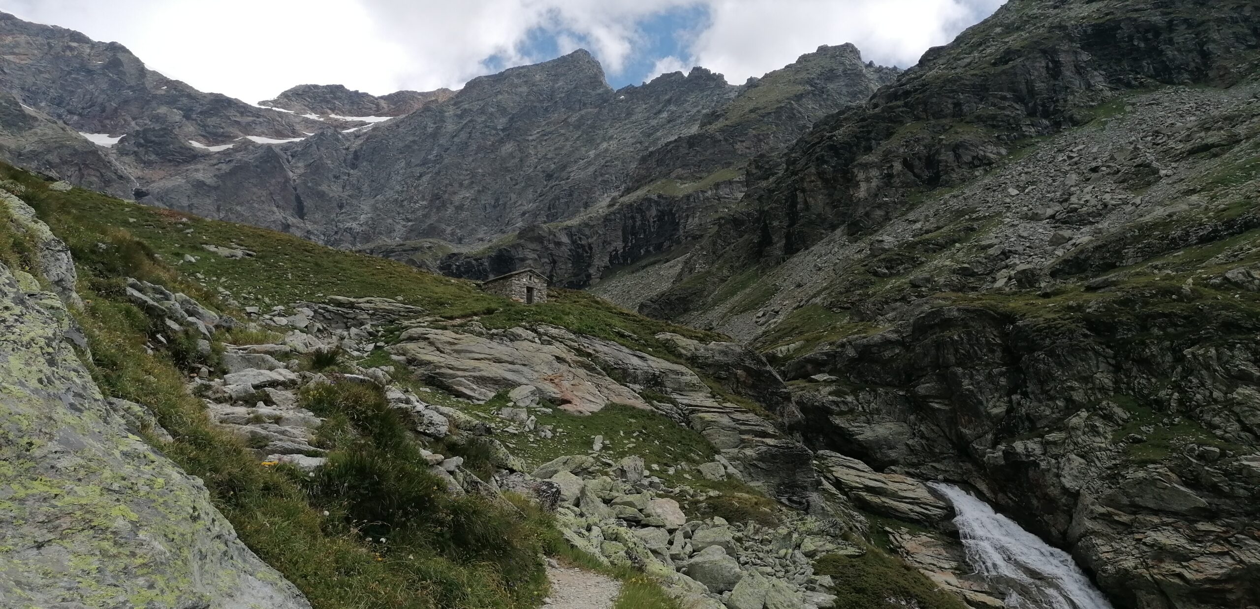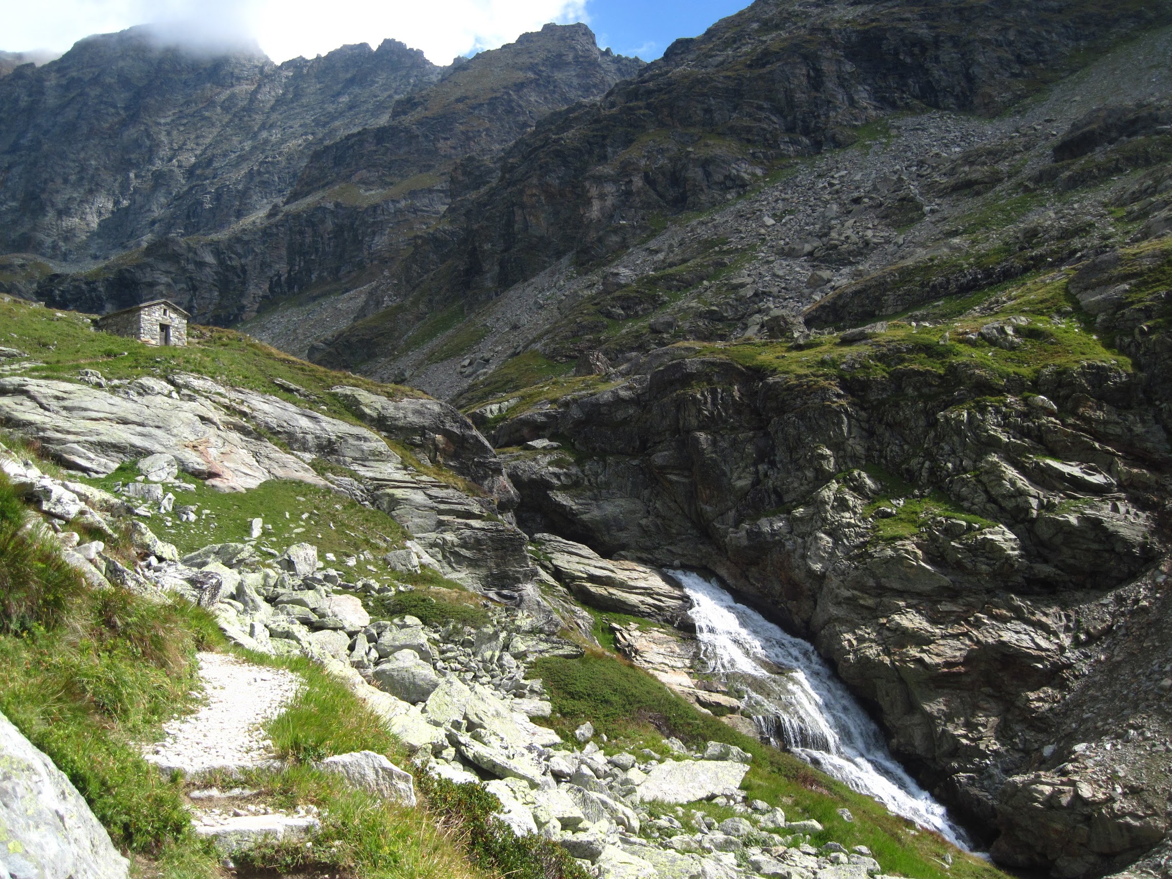 In seguito il sentiero è meglio segnalato e, dopo un tratto quasi pianeggiante, sale assai ripido alla cappelletta e quindi al lago di San Grato.