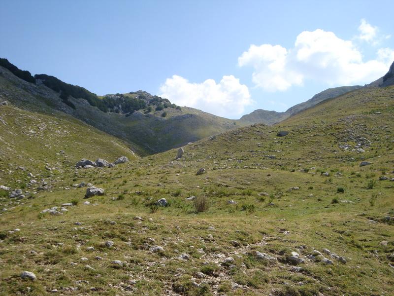 Da qui si guadagna un piccolo stazzo circondato da un muretto a secco (1520).Si sale subito a dx (Sud) e per un ripido pendio si supera un piccolo valico (1713) entrando in una conca (Chiatra su IGM).Sempre in direzione Est ci si alza ad un altro valico che dà accesso al Fondillo di S.Donato.Tenendosi sulla sx per non perdere dislivello si segue la dorsale del Monte S. Marcello fino alla vetta di Q.1977.