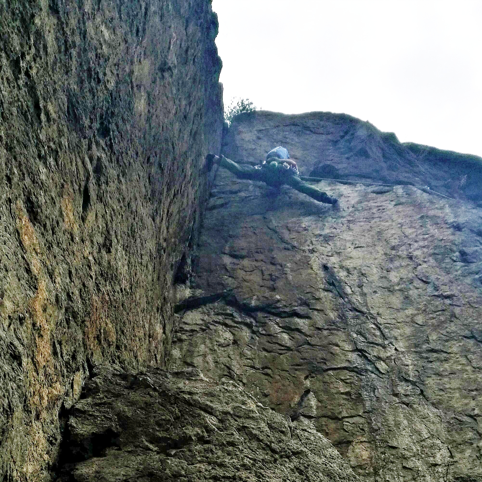 L3: muro iniziale, fessura strapiombante e muro finale (6c+)
