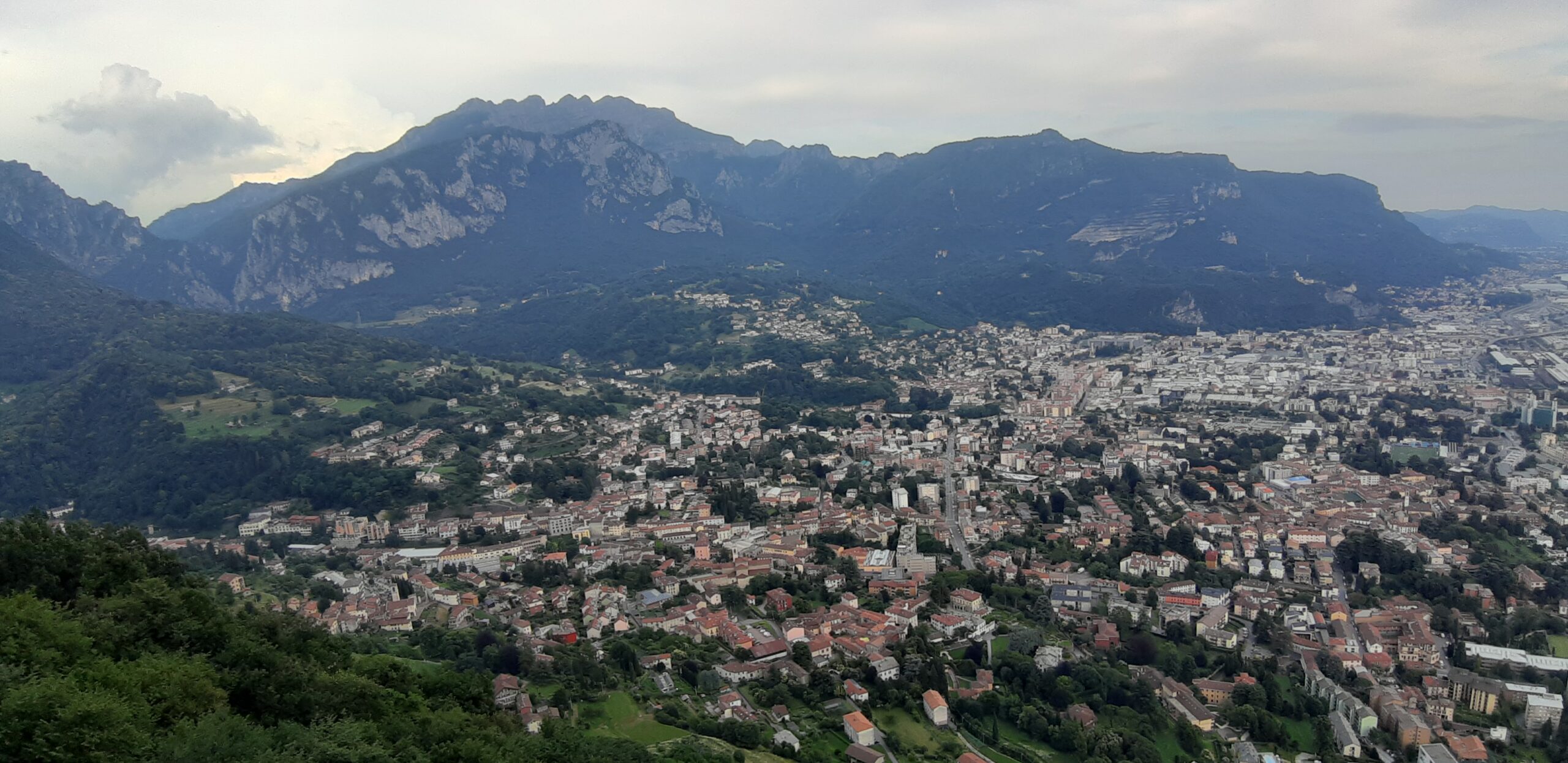 A destra si prosegue verso la frazione di Laorca, invece abbandonare la strada cementata e proseguire dritti imboccando il sentiero sterrato che sale costeggiando la rete parasassi. Successivamente non prendere il bivio per la ferrata "Alpini della Medale" che sale a destra nel bosco, ma proseguire costeggiando la rete parasassi fino ad una Madonnina. Continuare sul sentiero che sale verso destra per poi piegare nuovamente verso sinistra, arrivando alla falesia delle placchette del San Martino.