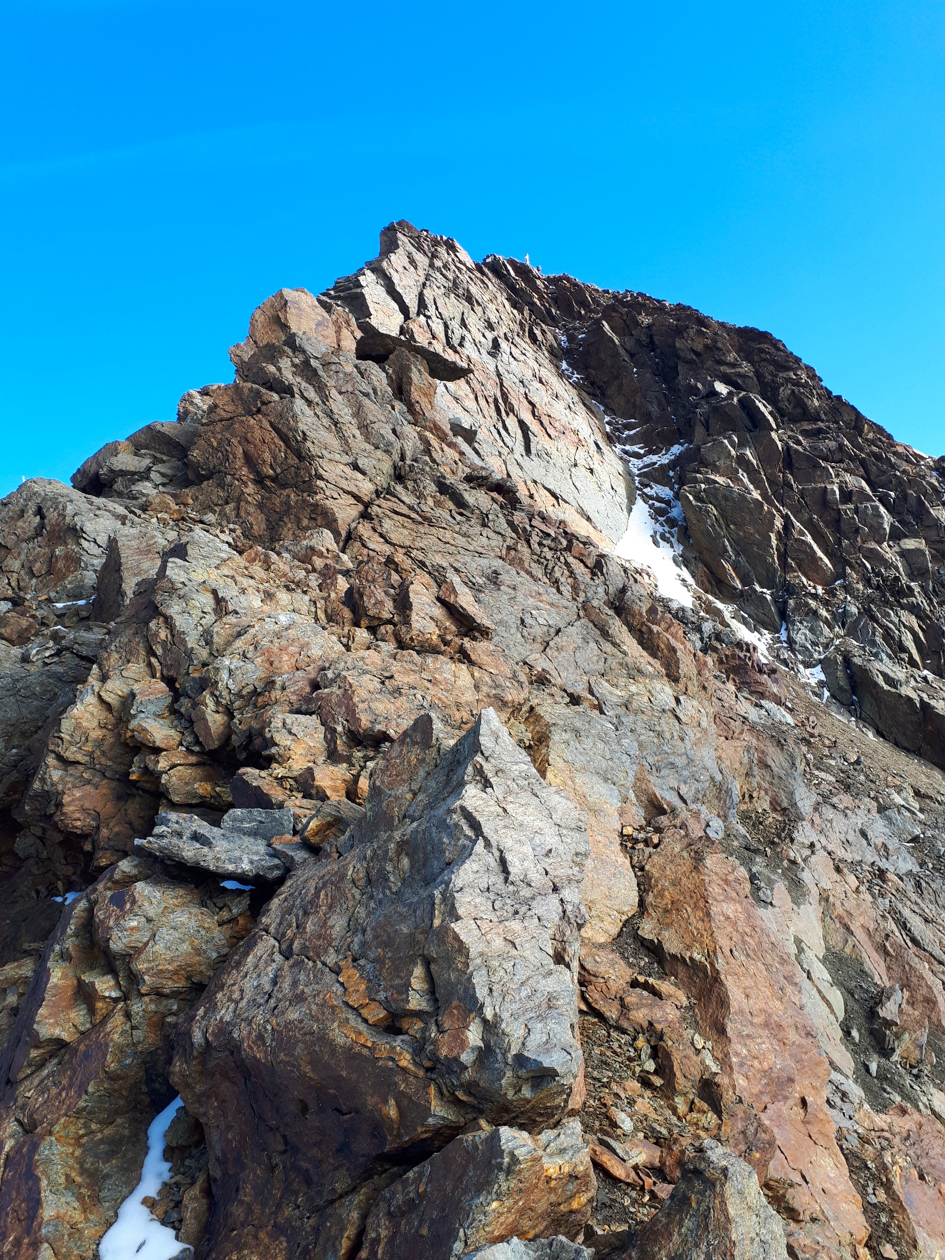 La cresta è ripida ma normalmente ben tracciata e non da’ problemi di sorta. Ritorno per lo stesso itinerario (sempre molto lungo).