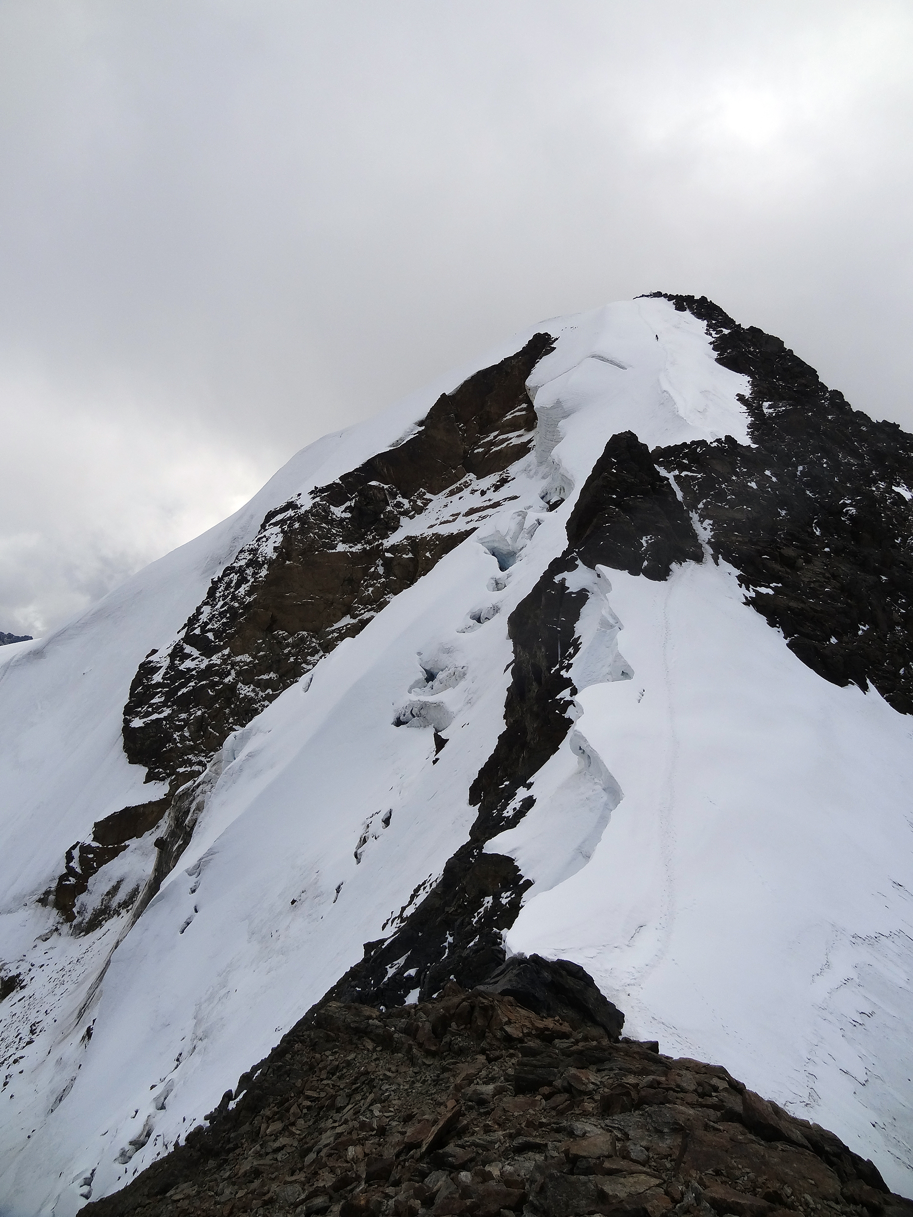 cresta NW al colletto (attenzione in questo tratto, all’eventuale presenza di crepacci: normalmente non c’é traccia di pista).