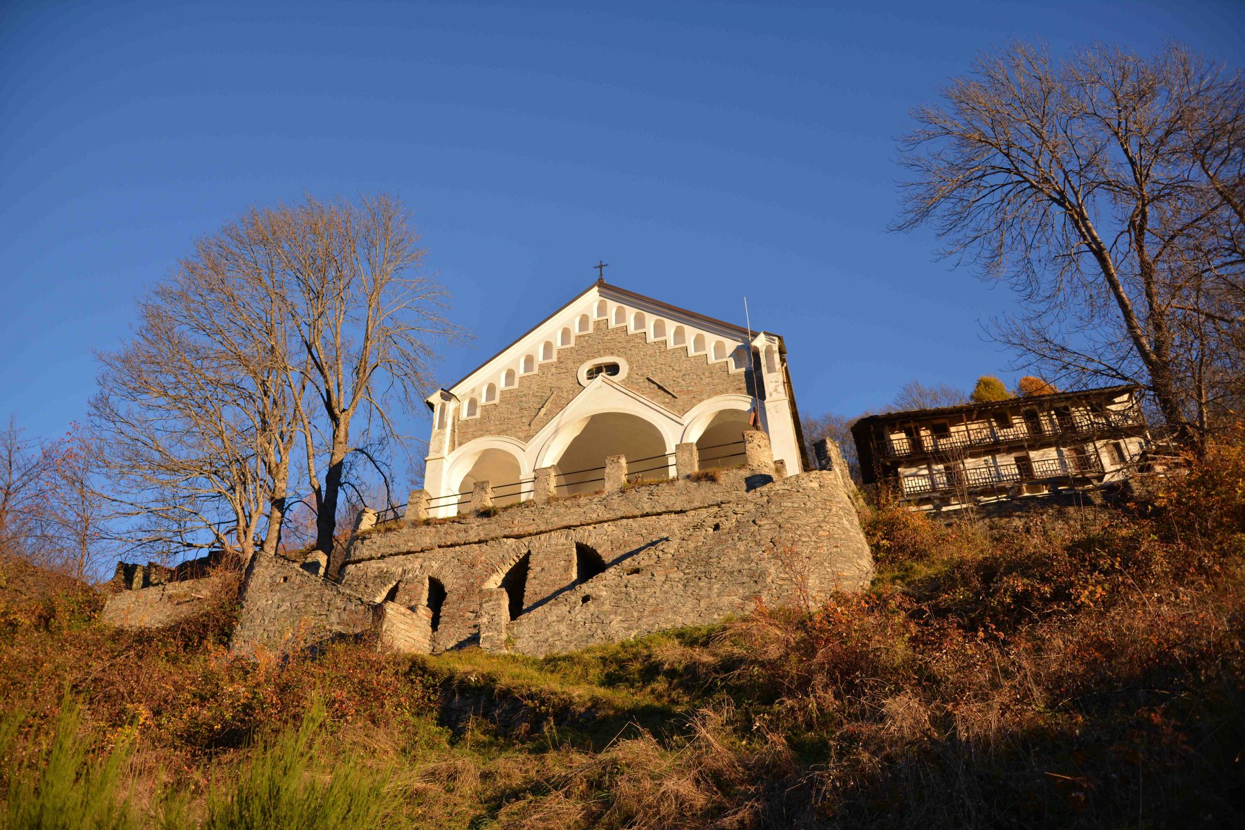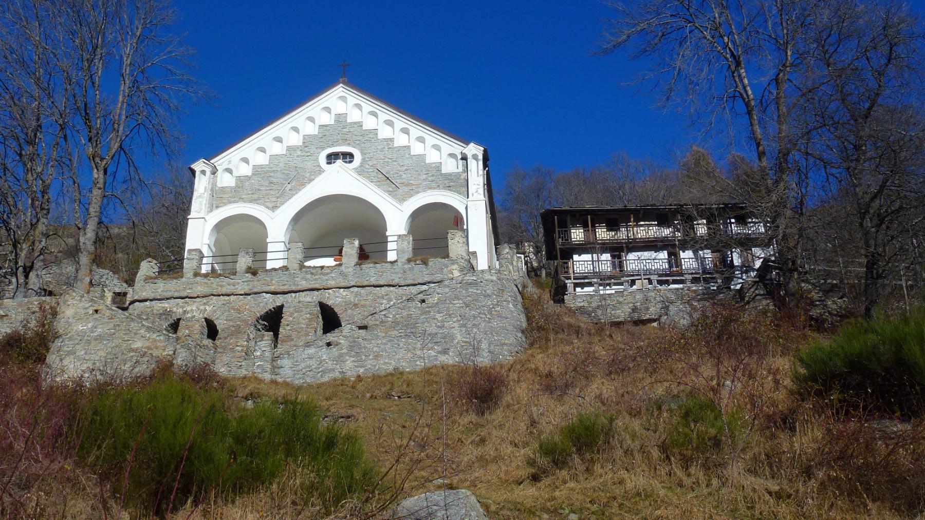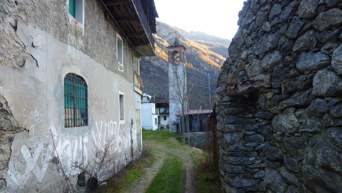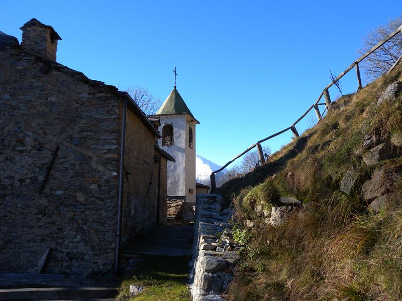 Dal parcheggio si torna verso la borgata Rocci, su strada asfaltata, dove a destra, senso di marcia, inizia il sentiero GTA, segnaletica presente, che sale al Santuario S. Anna ai Meinardi. Il sentiero, con un lungo traverso taglia il versante sud-est della costa di Fontane Fredde. Dapprima quasi in piano fra boschi di castani fino al sottopasso della condotta forzata, poi inizia a salire sempre nel bosco giungendo alla borgata abbandonata di Bertodasco. Si continua a salire a monte sempre nel bosco e si giunge alla borgata Perebella, anch’essa abbandonata. Giunti al secondo gruppo di case dopo la fontana , sul muro di una baita è posta la nuova indicazione S. Anna – Noasca, dopo aver svoltato a destra si sale sopra le case nel bosco ed in breve si raggiunge la strada carraia dell’AEM; svoltare a sinistra seguire la strada che pianeggiante raggiunge la dorsale rocciosa, in prossimità di tralicci, cabine dell’AEM, con ampia vista ad ovest sulla valle, continuare a seguire la strada fino al suo termine; si segue ora il sentiero che con andamento a piccoli saliscendi attraversa la pietraia e con un lungo traverso, dopo aver superato un canale franoso, raggiunge il Santuario di S. Anna. La discesa può avvenire sul sentiero di salita, oppure può avvenire sul buon sentiero in discesa alla borgata Fei, ovviamente in questo caso bisogna organizzarsi prima e portare un’auto in loco.