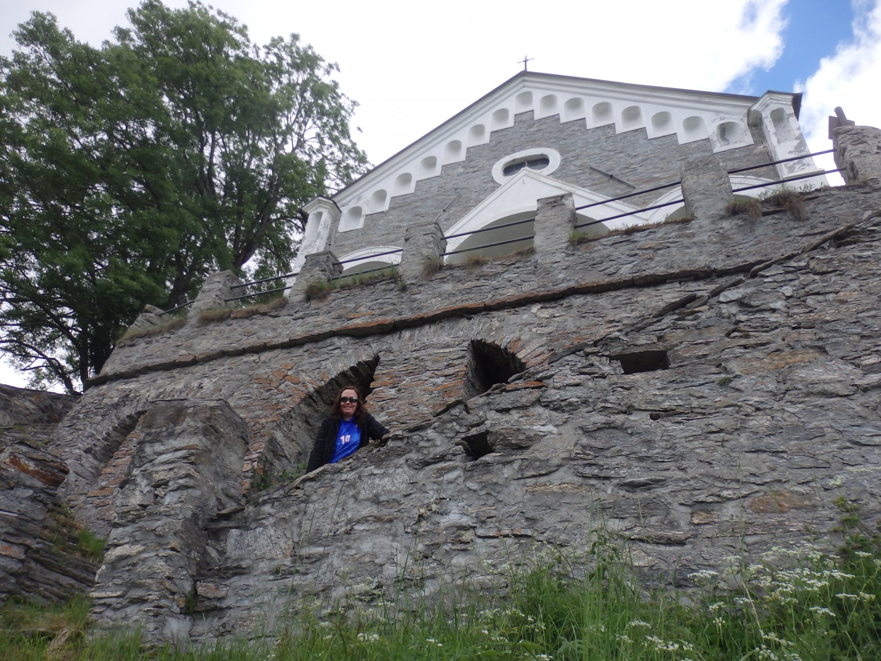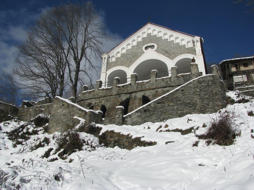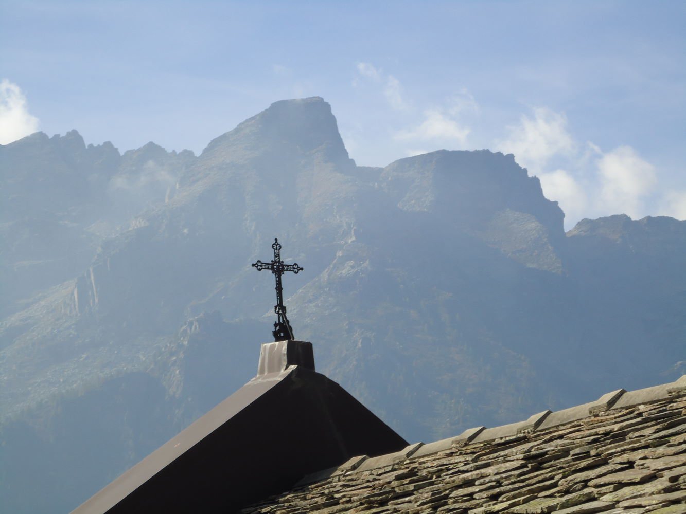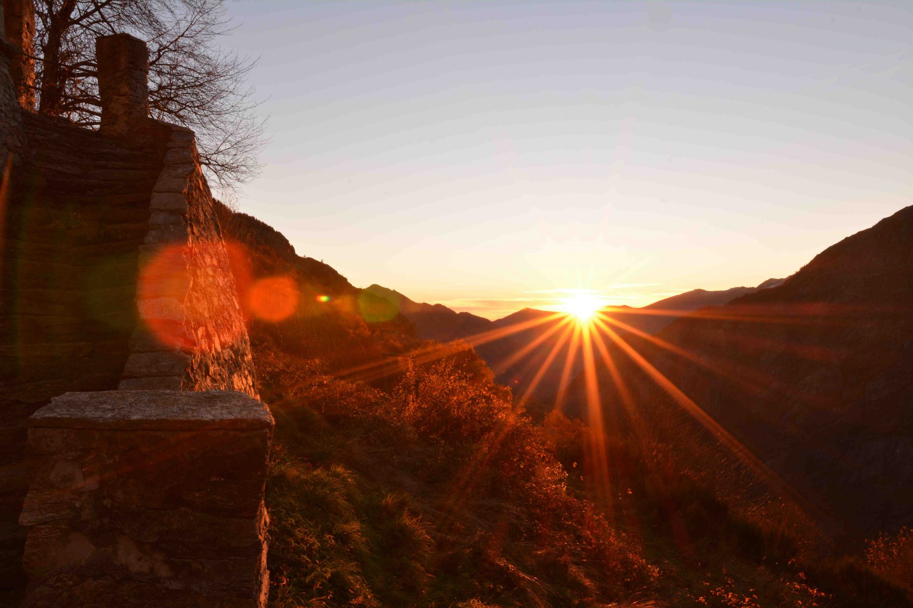 Dal parcheggio si torna verso la borgata Rocci, su strada asfaltata, dove a destra, senso di marcia, inizia il sentiero GTA, segnaletica presente, che sale al Santuario S. Anna ai Meinardi. Il sentiero, con un lungo traverso taglia il versante sud-est della costa di Fontane Fredde. Dapprima quasi in piano fra boschi di castani fino al sottopasso della condotta forzata, poi inizia a salire sempre nel bosco giungendo alla borgata abbandonata di Bertodasco. Si continua a salire a monte sempre nel bosco e si giunge alla borgata Perebella, anch’essa abbandonata. Giunti al secondo gruppo di case dopo la fontana , sul muro di una baita è posta la nuova indicazione S. Anna – Noasca, dopo aver svoltato a destra si sale sopra le case nel bosco ed in breve si raggiunge la strada carraia dell’AEM; svoltare a sinistra seguire la strada che pianeggiante raggiunge la dorsale rocciosa, in prossimità di tralicci, cabine dell’AEM, con ampia vista ad ovest sulla valle, continuare a seguire la strada fino al suo termine; si segue ora il sentiero che con andamento a piccoli saliscendi attraversa la pietraia e con un lungo traverso, dopo aver superato un canale franoso, raggiunge il Santuario di S. Anna. La discesa può avvenire sul sentiero di salita, oppure può avvenire sul buon sentiero in discesa alla borgata Fei, ovviamente in questo caso bisogna organizzarsi prima e portare un’auto in loco.