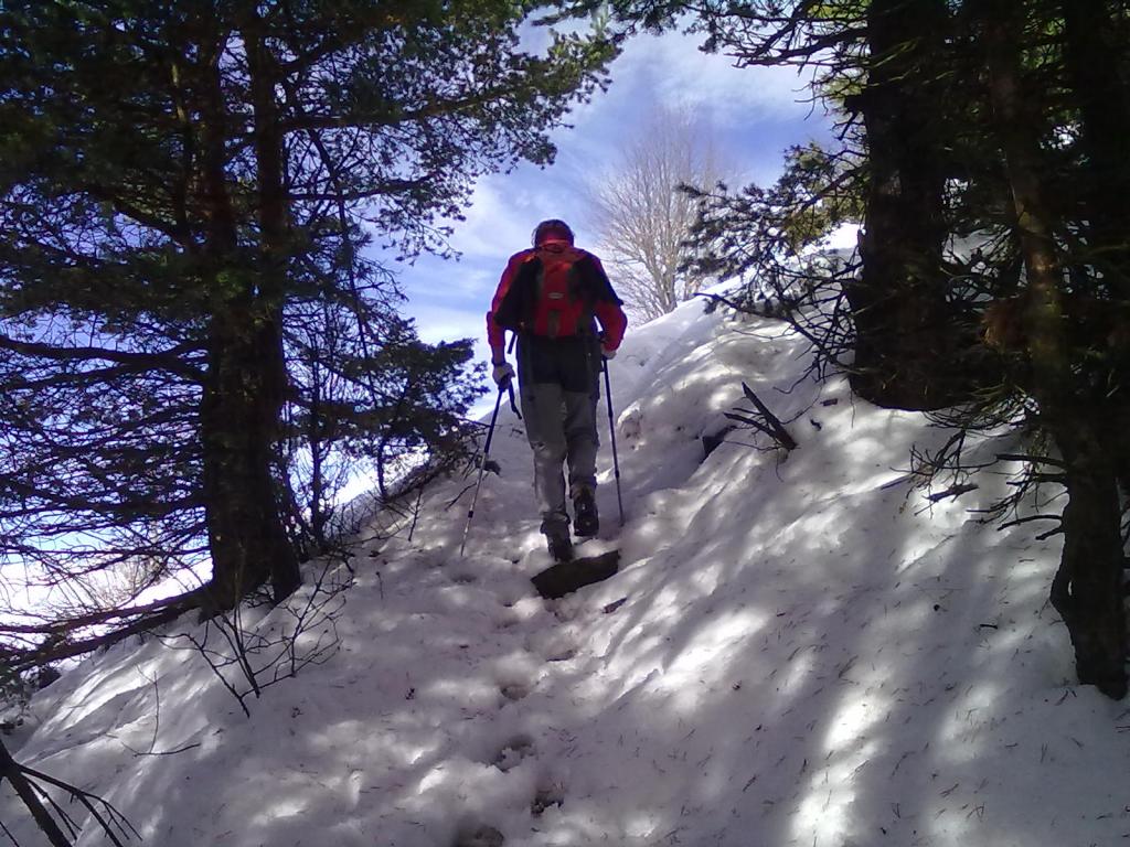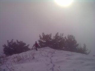 partiti da Novaretto (per fare un po di dislivello). Neve da Celle; sentiero molto battuto fino al bivio per Rocca Sella , poi buona traccia fino al Colle Arponetto. Nella parte finale sarebbe stato utile avere le ghette visto che c’era neve fino a metà stinco. In cima nebbie in veloce transito con panorama molto variabile