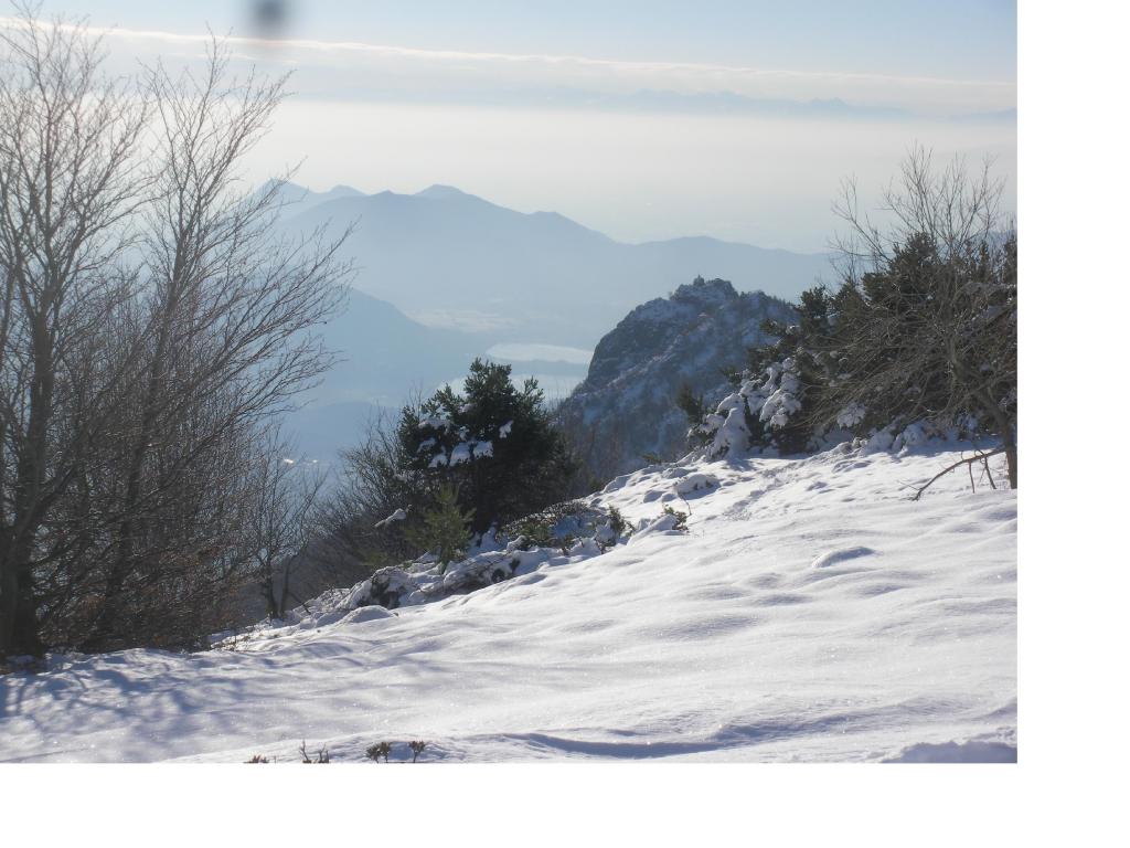 Con poco tempo a disposizione e un ginocchio ancora un po’ malconcio, oggi non si sarebbe potuto fare di piu’. Esiste una pista fatta da ciaspolatori di recente, che dalle Muande Soffietti copre l’intero breve itinerario fino in punta. Data la quota relativamente bassa ,inizia ad essere scarsa la quantita’ di neve per giustificare un eventuale salita con gli sci, al momento inpraticabile con questo mezzo, in gran parte dovuto anche alla inidoneita’ del terreno. Con un paio di ciastre al seguito..ecco invece risolto il problema. -8° al colle della Bassa nei lati in ombra. In quanto alla meteo basta guardare le foto..!