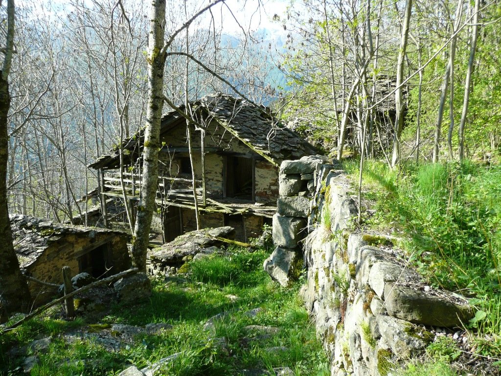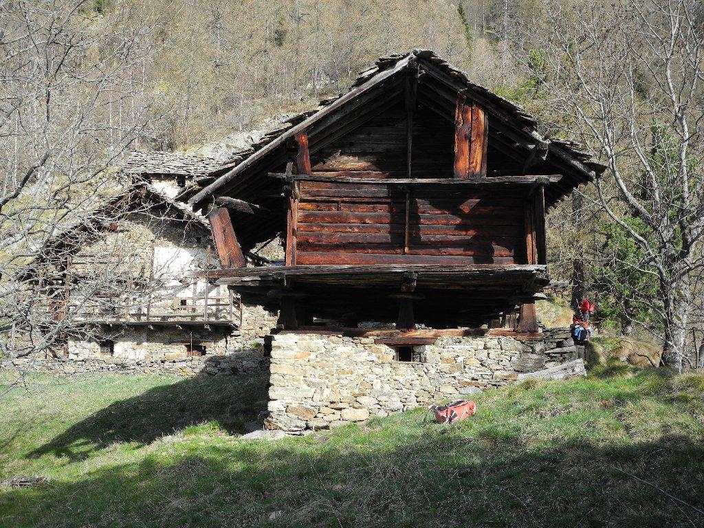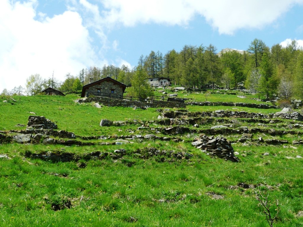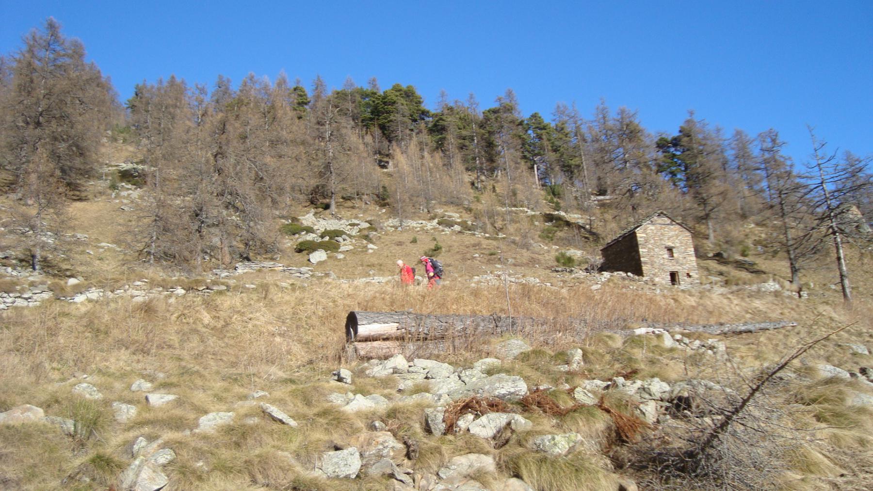 Si prosegue ora su sentiero non più numerato che sale attraversando la piccola pietraia a sx dell’alpe passando nei pressi di una baita al limite del rado bosco e procede ora in direzione sud est prendendo lievemente quota attraversa un paio di torrentelli e raggiunge l’isolata baita Fedeial (Federale) 1687m.