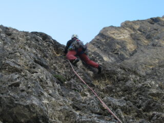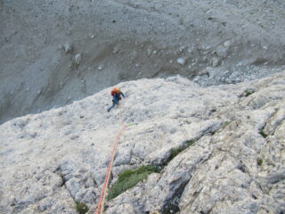 Occorre fiuto alpinistico per seguire la via, sicuramente non catalogabile come via sportiva.