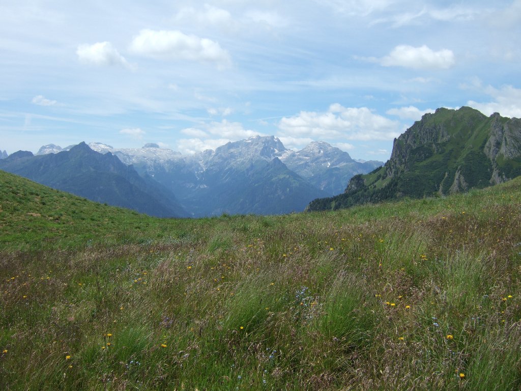 Per questo, superando una zona di ontanelle si arriva sui vasti prati sotto il Sasso Bianco e il Col Pian. Si sale ripidamente superando un canalino roccioso e per buon sentiero si raggiunge la sommità del Sasso Bianco mt 2407.