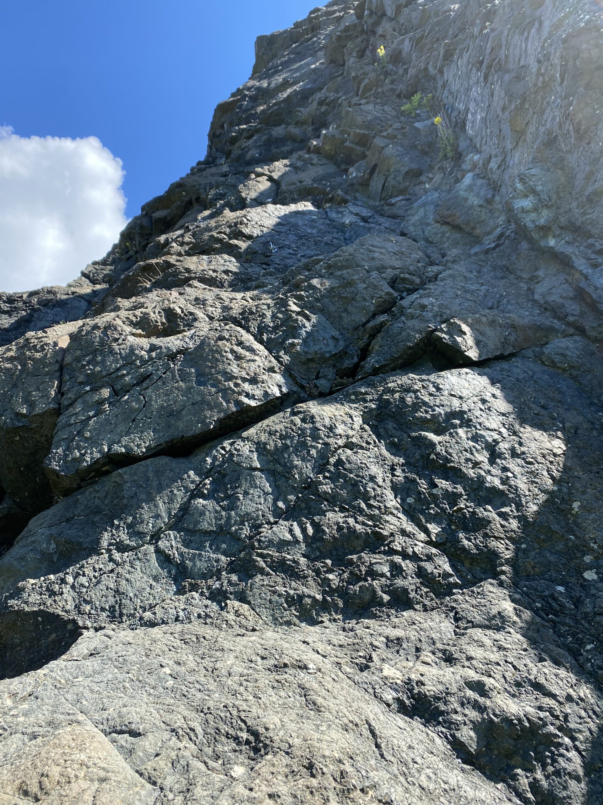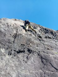 - L2 – 30 metri si sale in verticale, placca dura che si riesce ad ammorbidire sfruttando la roccia di dx. 5b