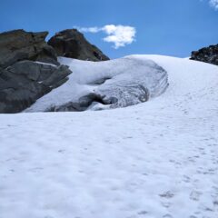 Il tratto sullo Schwarzensteinferner è tracciato ed anche il pezzo su roccia, nonostante vi siano alcune lastre di neve e ghiaccio è facile