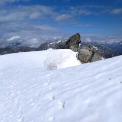 Anche la salita al Felskopf è facilitata da macchie di neve ed il tracciato dopo è ben individuabile