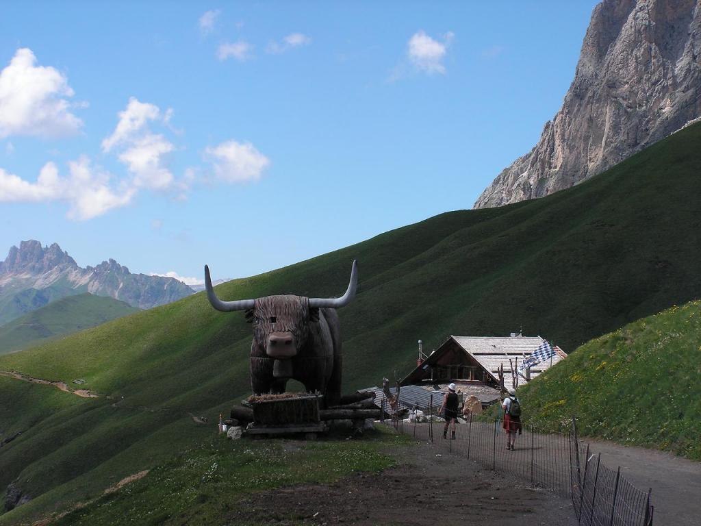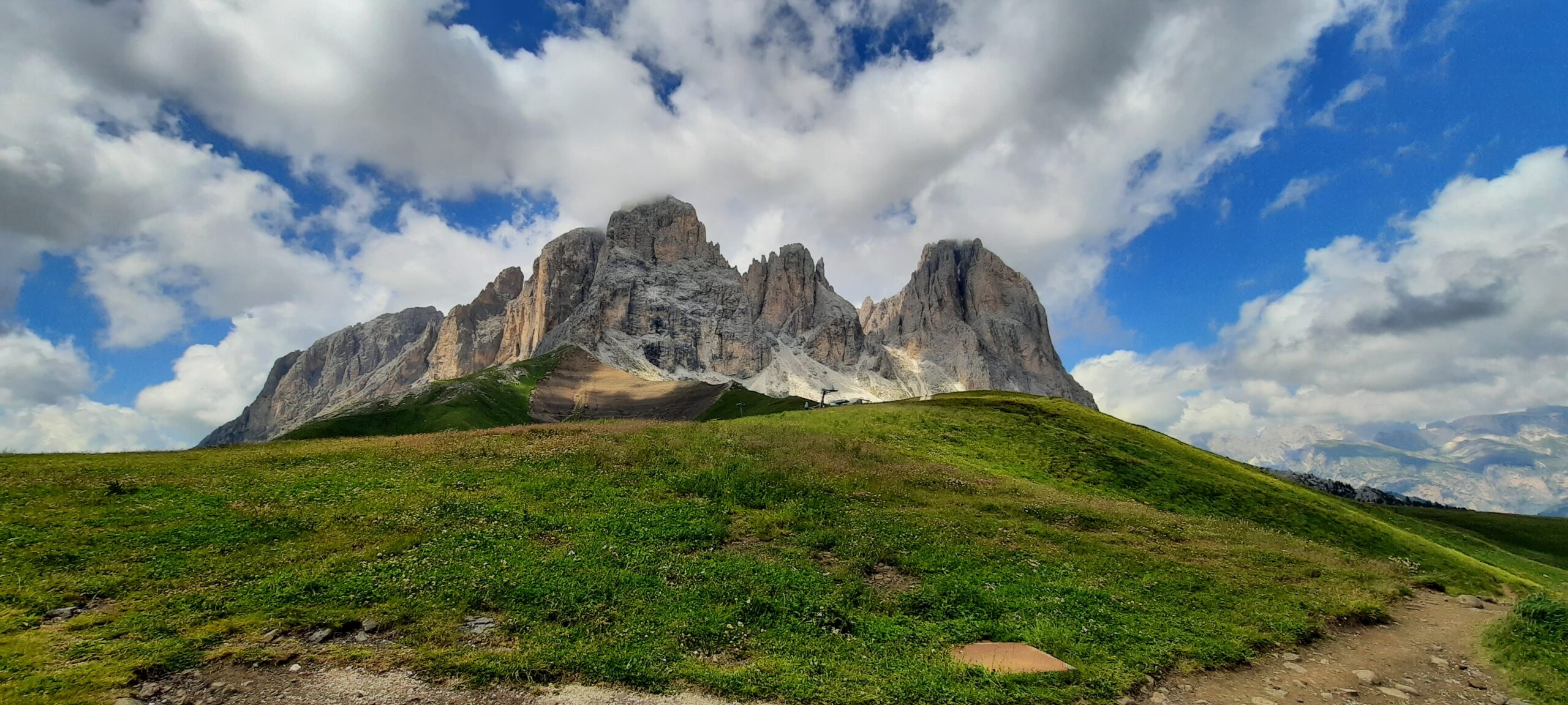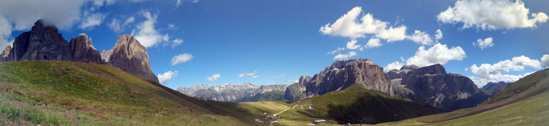 Dal passo Sella si prende il sentiero 594 e si raggiunge Forc. Rodella, si prosegue con vari sali e scendi fino al Rif. Pertini.