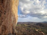 Dall’ultima sosta, con una corda fissa è possibile raggiungere in pochi metri un pianoro sommitale con bellissima vista.