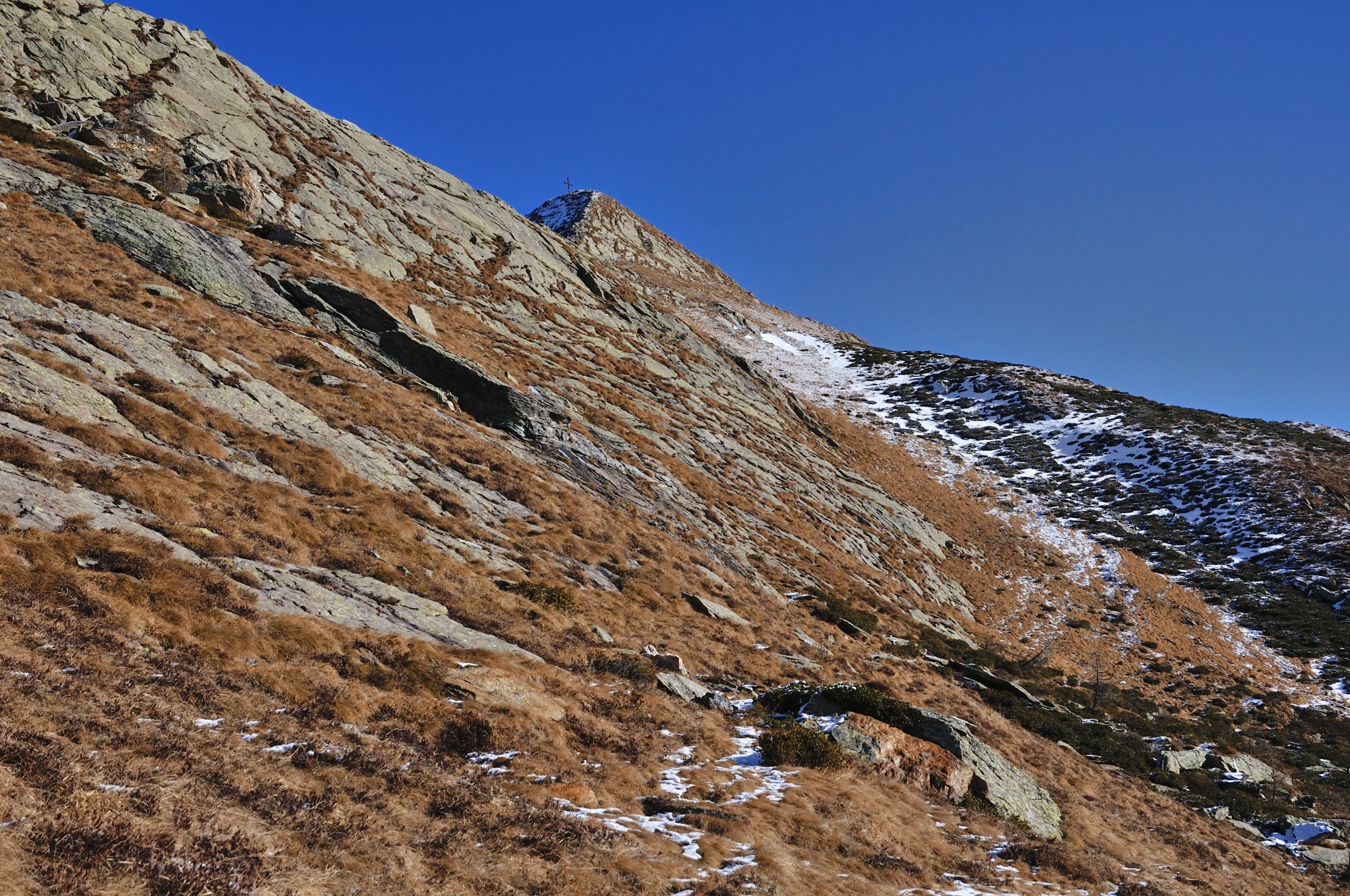 L'ultimo seppure breve tratto di salita è valutabile EE, ripido e su erba scivolosa, delicato in presenza di neve.