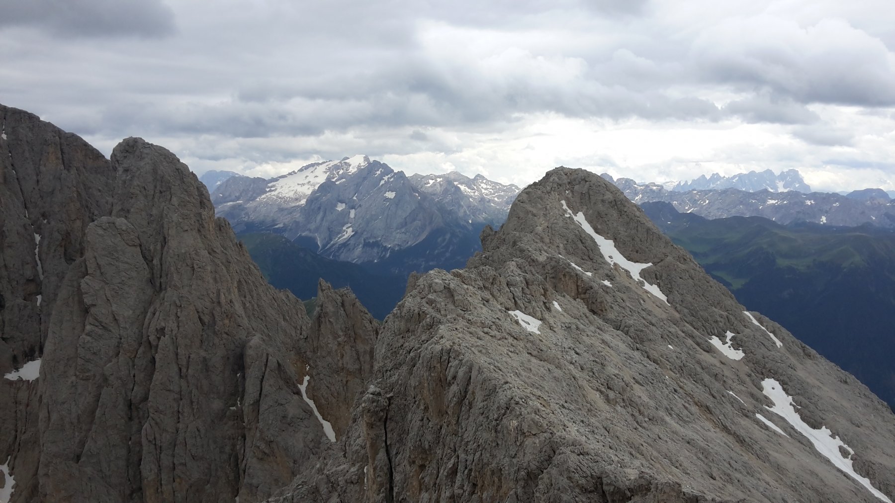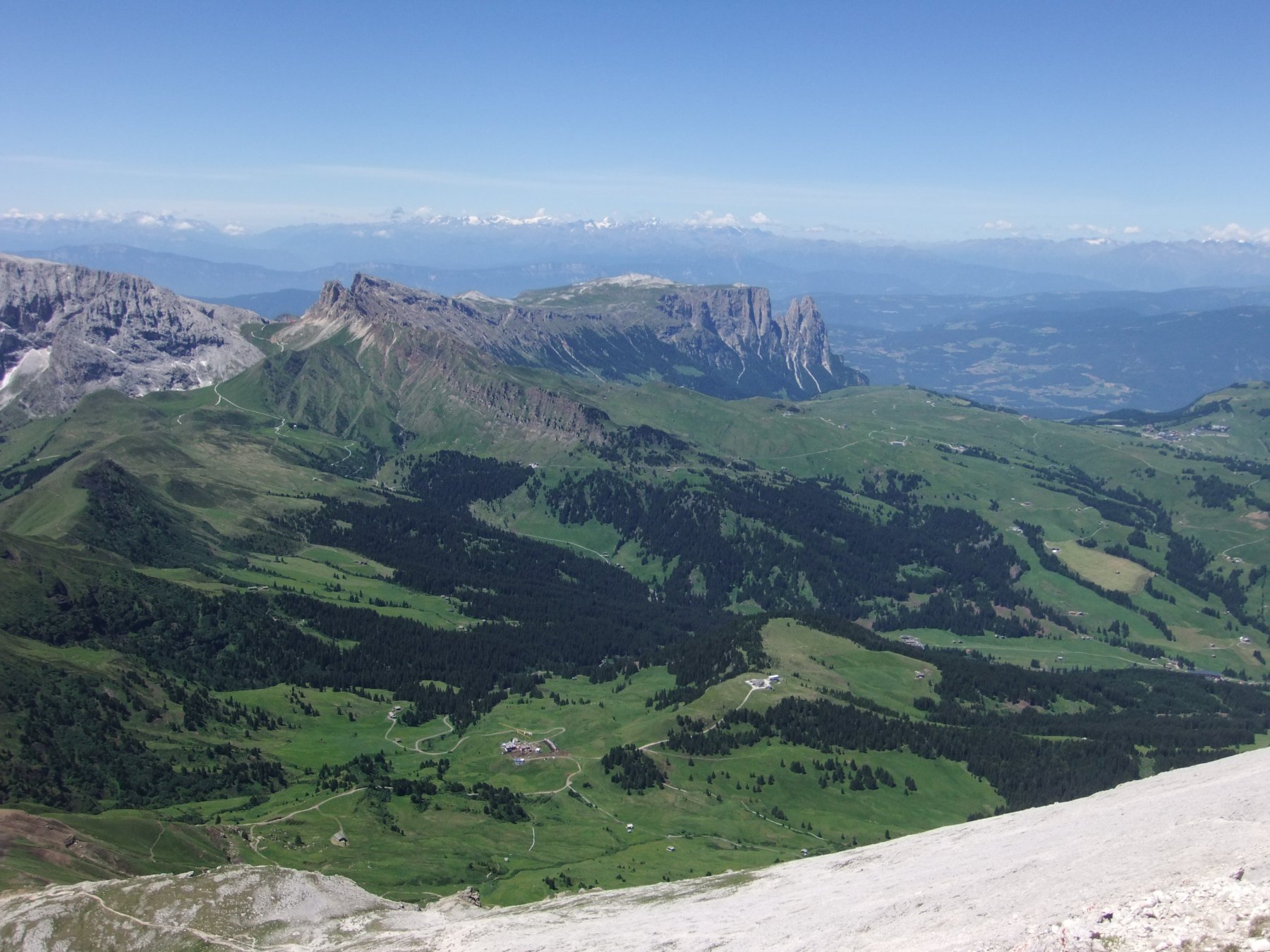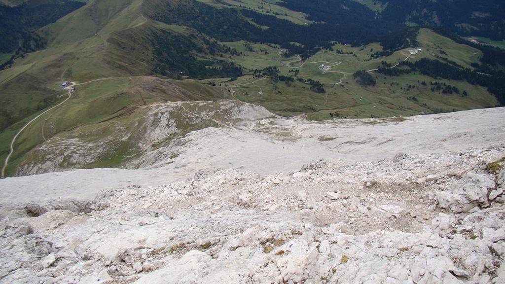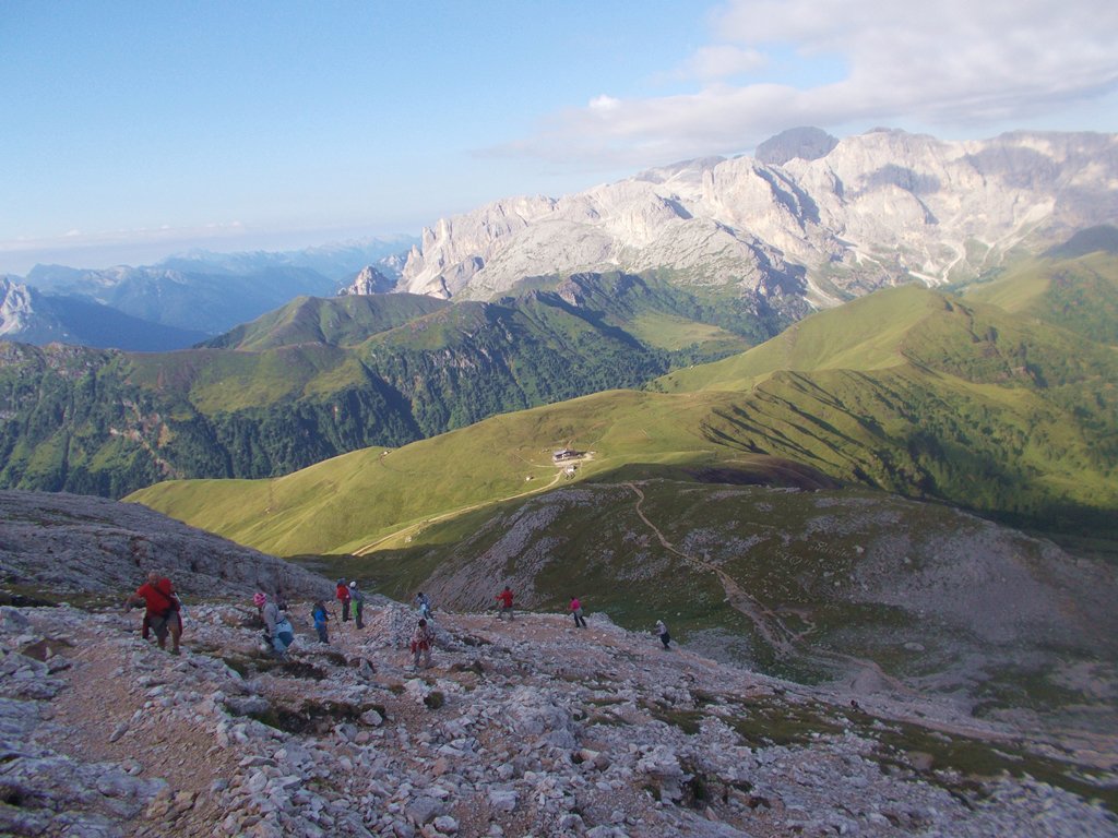 Discesa per il percorso di salita, oppure scendendo verso il Rifugio Sassopiatto, si può proseguire con il giro del massiccio fino a tornare al Passo Sella.