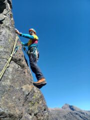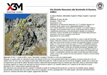 Terminata questa bella e facile via dalle caratteristiche classiche. Attrezzata con fix 10mm sui tiri ed alle soste. Discesa in doppia sulla via (prima doppia fuori via) oppure con tre facili doppie su canalino erboso a sinistra della parete (faccia a monte)