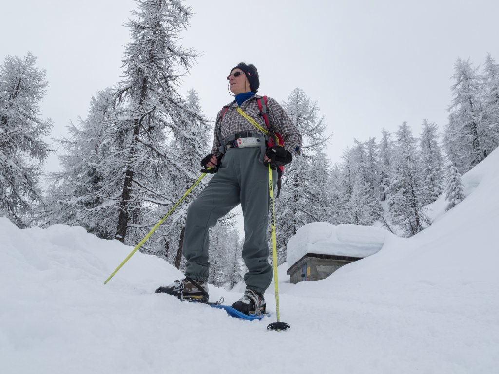 Oggi come sempre in compagnia di Loredana con qualche problema di tenuta racchette su questo tipo di neve.