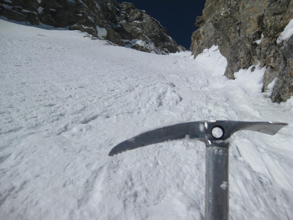 oggi arrivati all’attacco del canale un pò incerti se salire a causa del tempo un pò di foschia ma poi in un attimo e arrivato il sole e via in salita senza perder tempo,,in cima alla mezza,,bel posto solitario con pareti bellissime neve a mio parere bella,,, discesa soddisfacente compagnia gradita.
