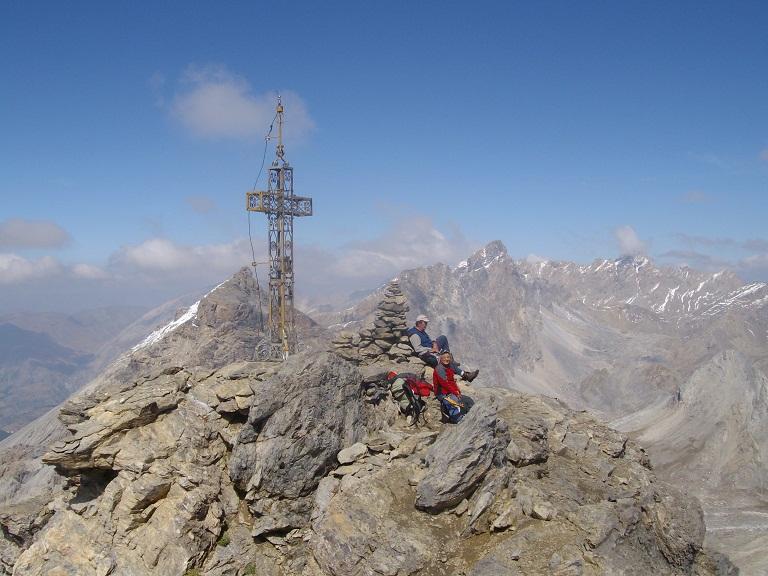 Con Gianni e Graziella in una bella giornata settembrina,prima di unirmi a loro sulla cima sono salito sulla Rocca Bianca cercando la via,trovando anche degli ometti nella parte alta dopo il canalino che indicano la giusta direzione della cima.
