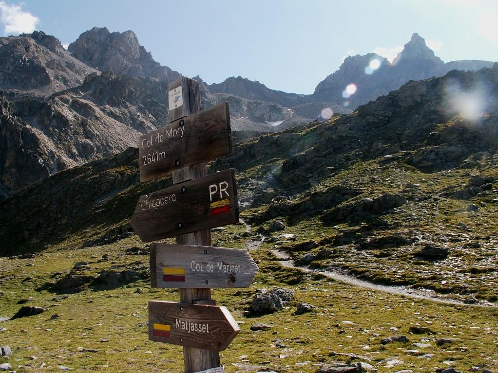 Qui si posano le bici e ci si incammina verso destra sud su di un sentiero che ci porta in 150 m di dislivello al Col de Marinet a 2785 m con ottima vista sui Lac de Marinet.
