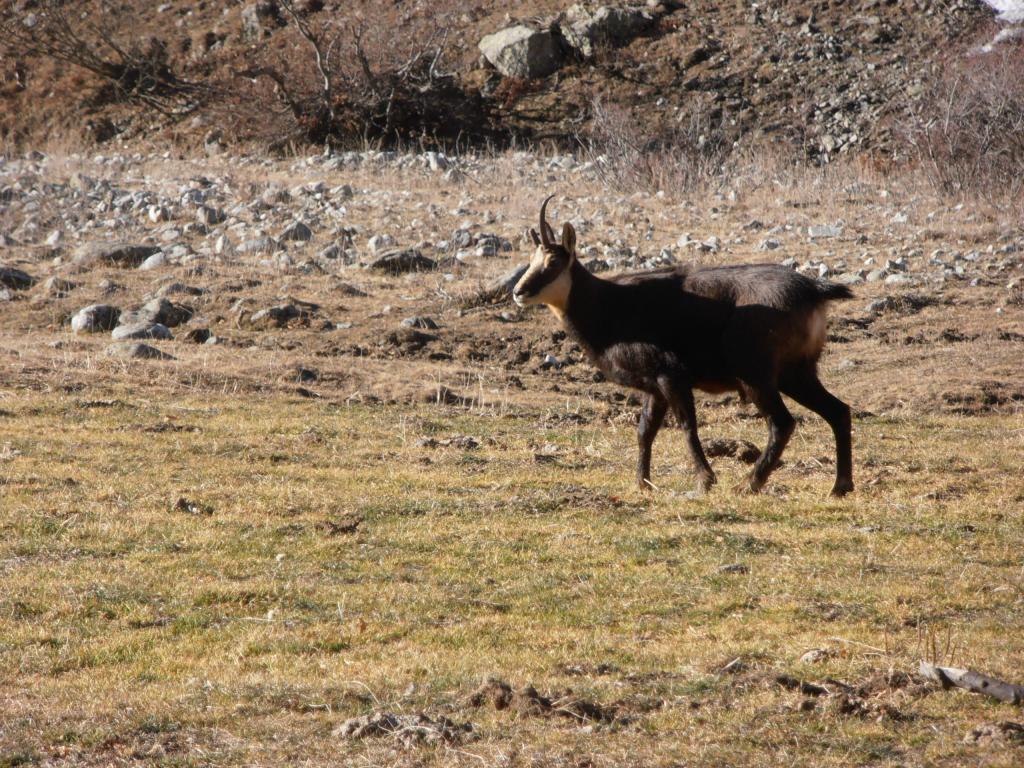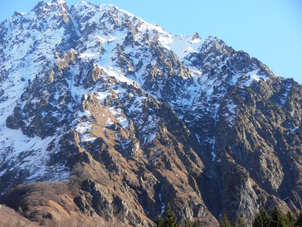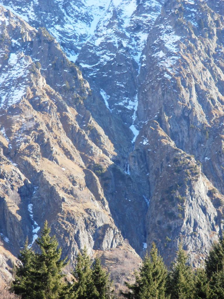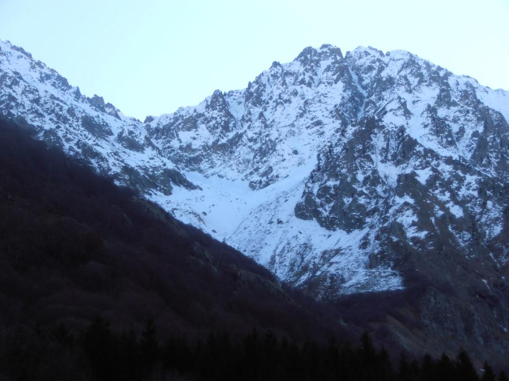Si esce poi con una rampa che costituisce la fine del canale: Passi di II e III conducono al pendio superiore. Da qui pervenire al colle dei camosci .( 5-6 ore dall attacco)