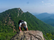 Per la discesa seguire i bolli rossi attraverso i massi accatastati, con qualche passaggio di arrampicata sul II, per circa 100 metri fino a raggiungere il sentiero che scende dal colle Aragno (bolli bianco rossi), da qui in 30′ circa si ritorna al rifugio Melano.