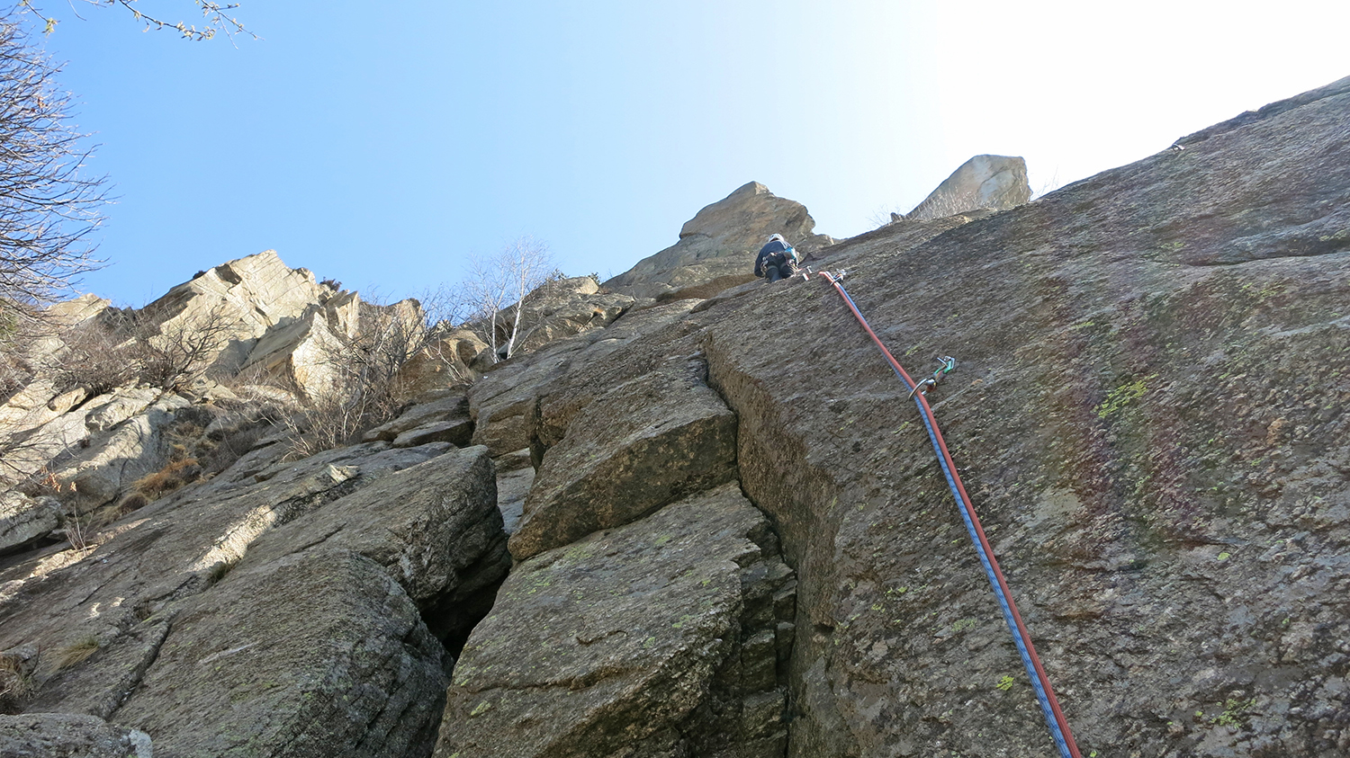 Dopo la normale siamo passati alla Pinerolesi. Un pò più difficile in quanto ,non mi vergogno a dirlo, ho munto un paio di rinvii alla partenza. La via è in ordine