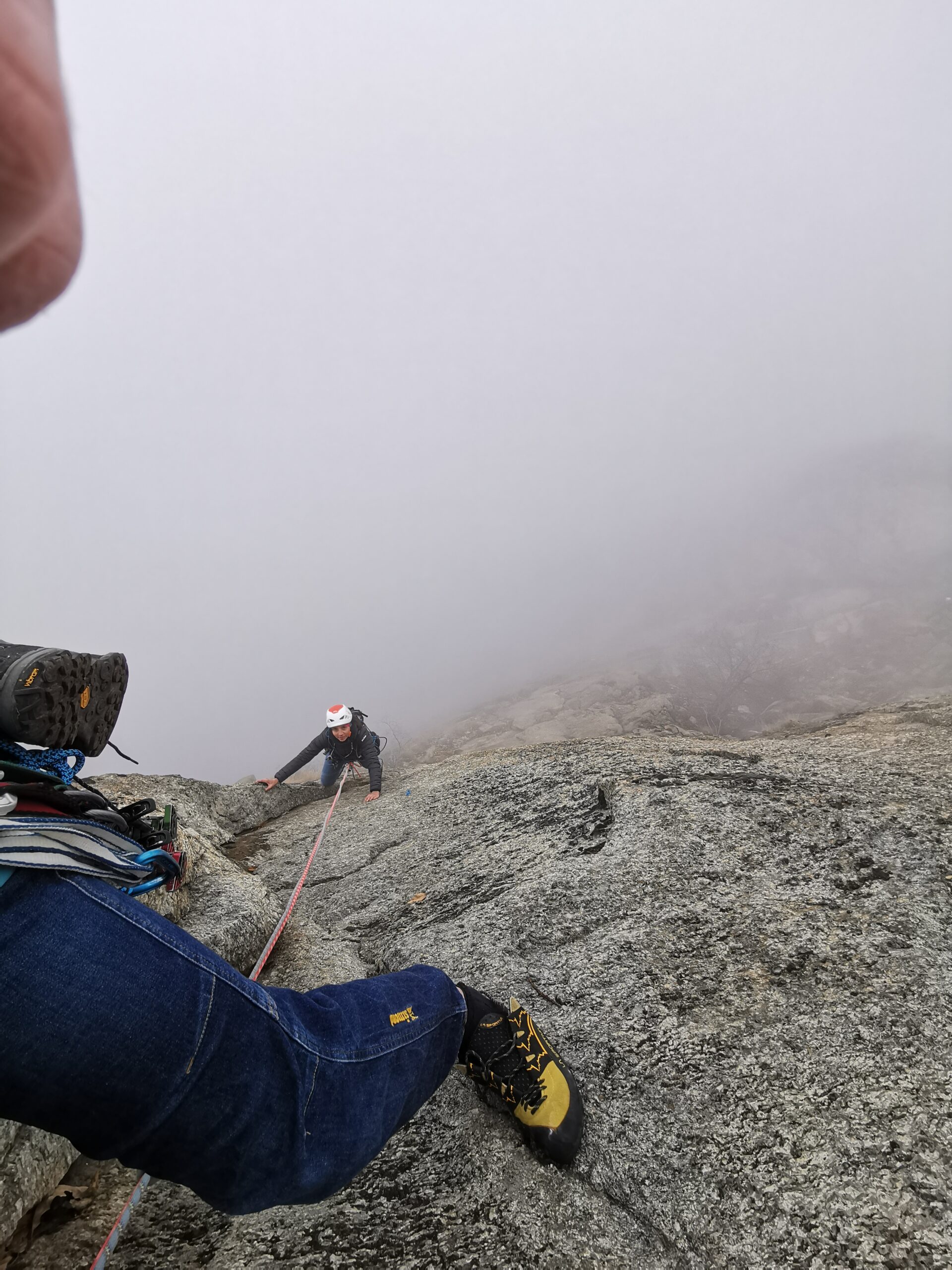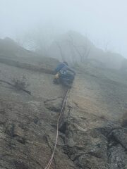 Giornata in sbarua, purtroppo in mezzo alla nebbia. Via bella e continua con alcuni passaggi atletici come il tetto di L2 e alcuni passaggi tecnici come la placca di L5 e 6. Con Miki