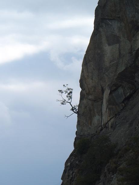 - III tiro seguire spit arrugginiti a sinistra che salgono un breve risalto fino ad una sosta nei pressi di una betulla 5b