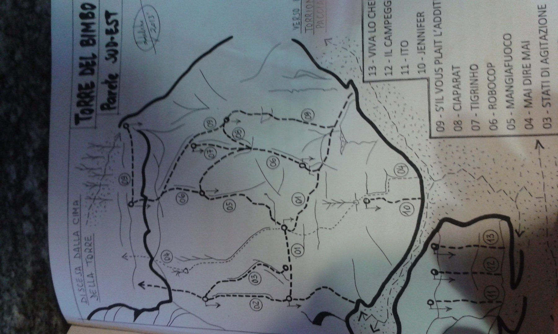 L3: Salire il primo muretto delicato poi un ribaltamento complicato (piu’ facile tutto a destra ma molto delicato per il secondo il traverso di rientro a sinistra). Ultimo tetto pronunciato per uscire dal tiro decisamente faticoso su svasi e con piedi troppo alti.