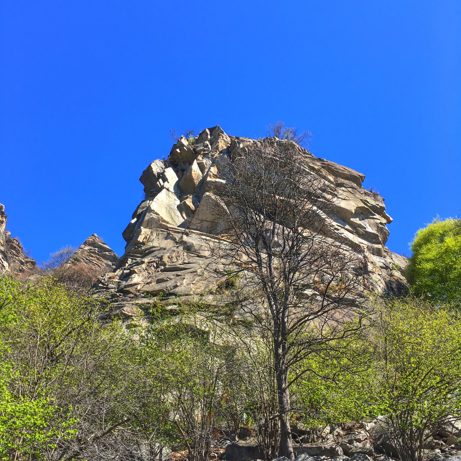 - L4 proseguire nel diedro, poi a sx. per fessure non difficili (utili un paio di friends) poi cordone attorno ad una quercia sino cima della torre (sosta a spit e maillon)