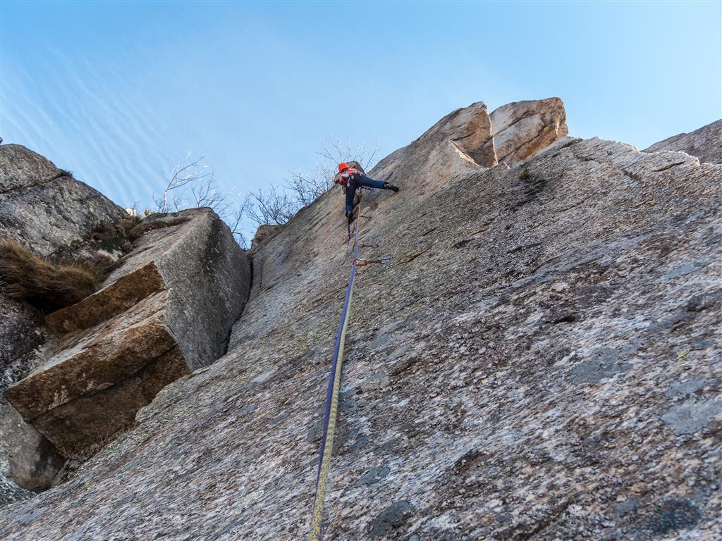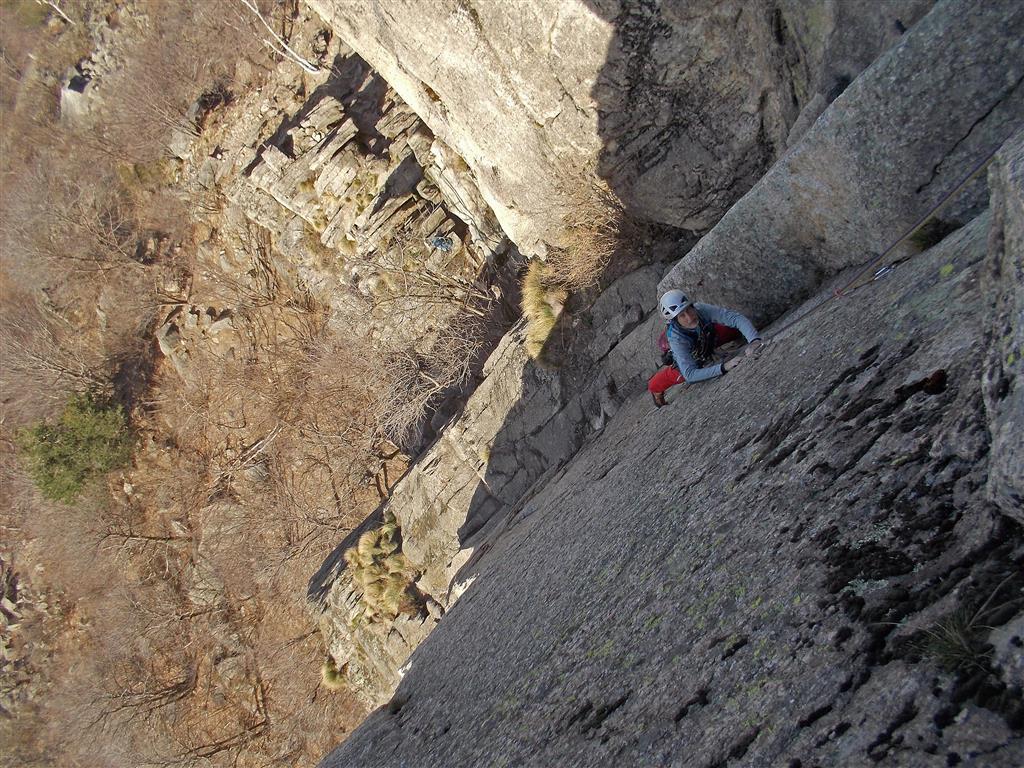Bella via, abbastanza dura. Chiodatura un pò sportiva. Possono essere utili dei nuts per il secondo ed ultimo tiro. Discesa veloce per sentiero.