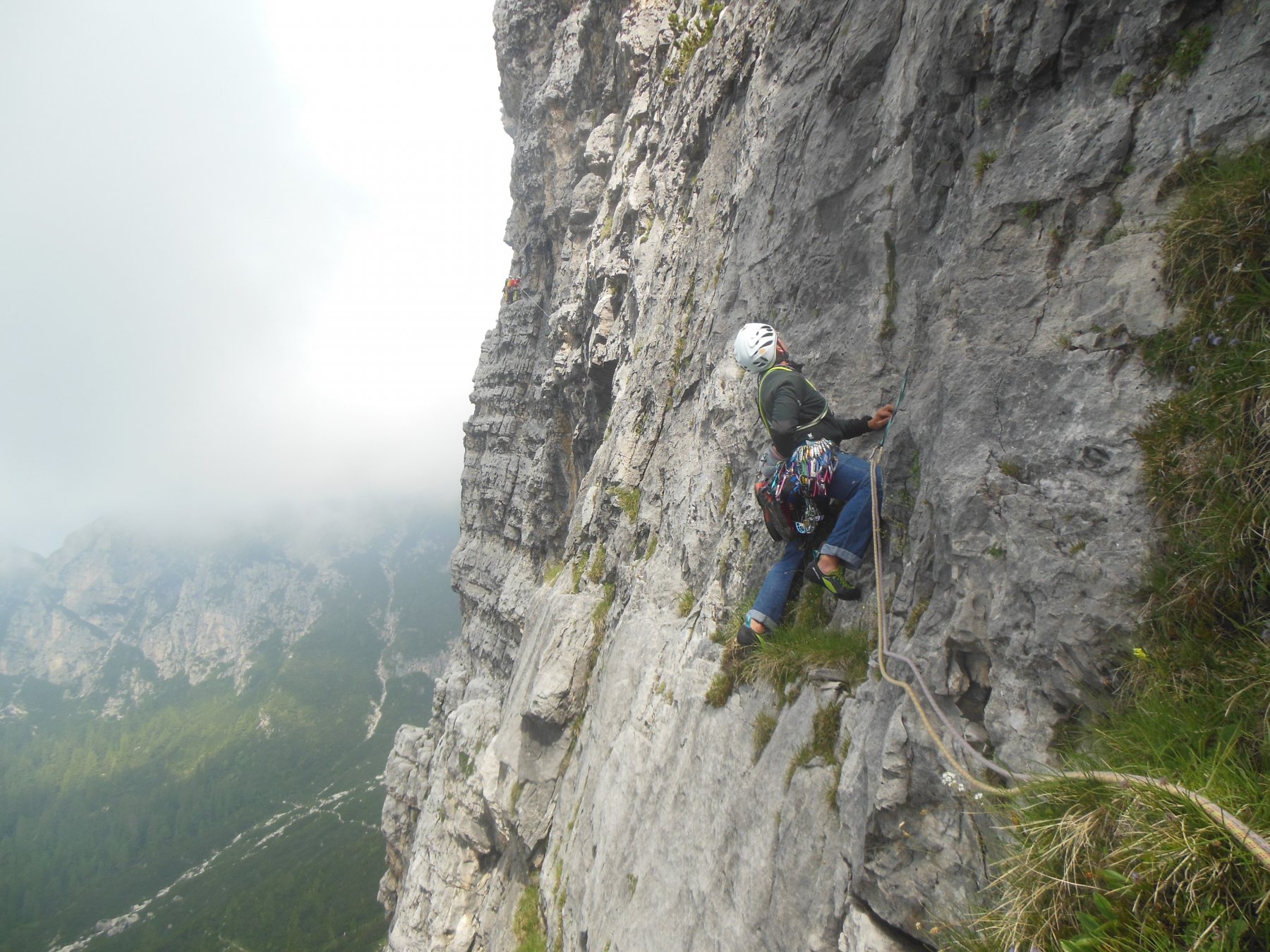 Moiazza (Cima), Pala de le Masenade – Via Costantini + variante uscita De Nardin