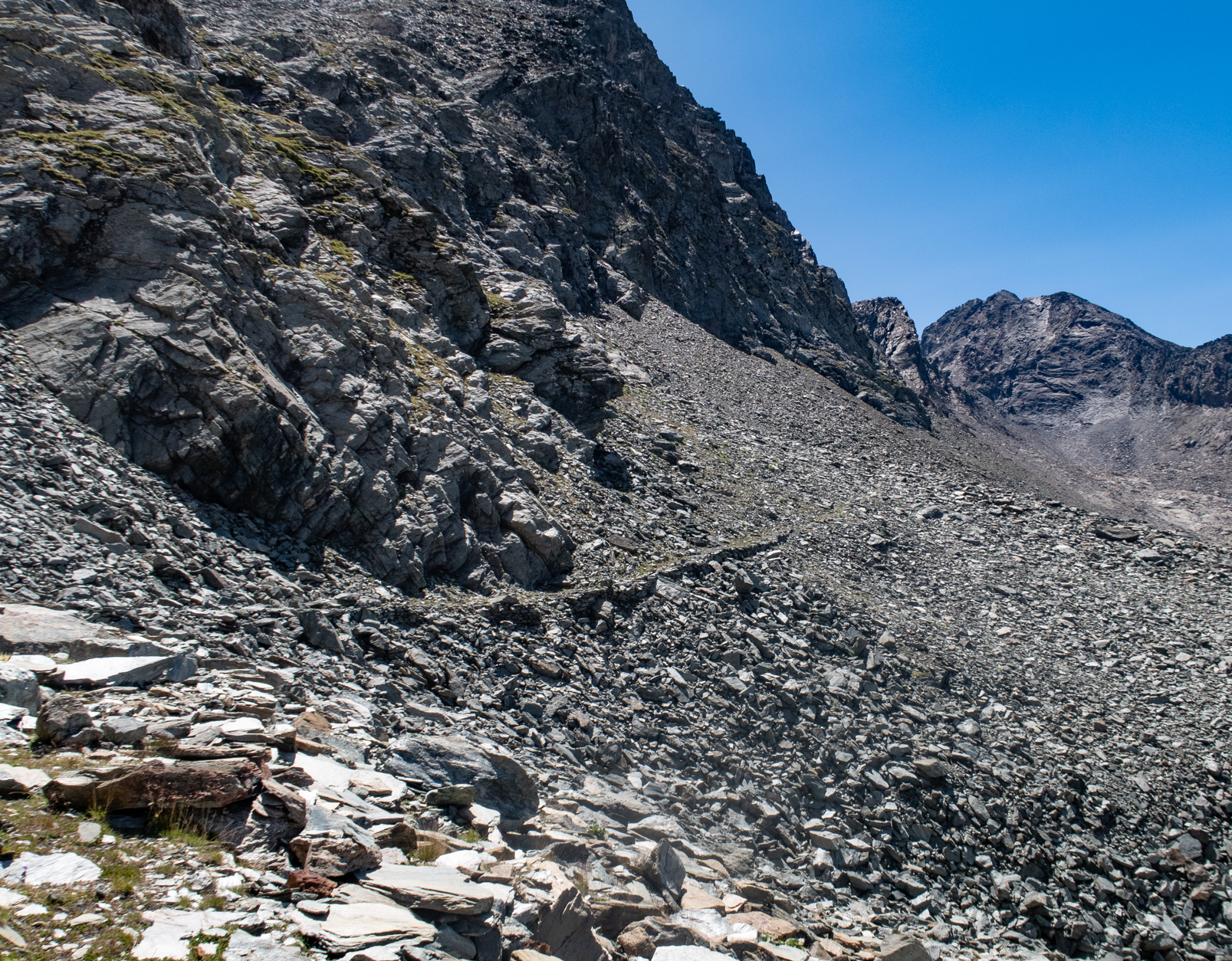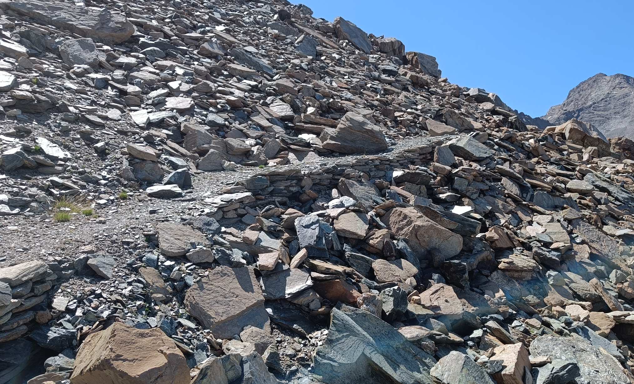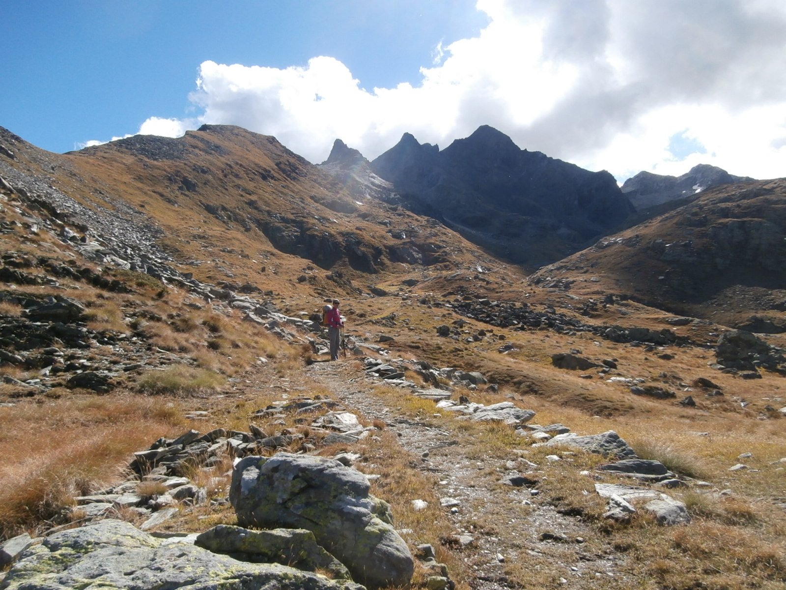 Come descritto nell’avvicinamento e nelle note ,fin sotto il passo a circa 2600 metri di quota nessun problema ,i sentieri sono ben tenuti e visibili, da questa quota bisogna andare a vista facendo molta attenzione alle frecce gialle ed agli ometti residui, si risalgono comunque diversi tratti in pietraia e dossi ripidi dirigendosi verso il passo ben visibile dal basso ,si percorrono i tratti ancora esistenti della vecchia mulattiera del Re raggiungendo la meta.